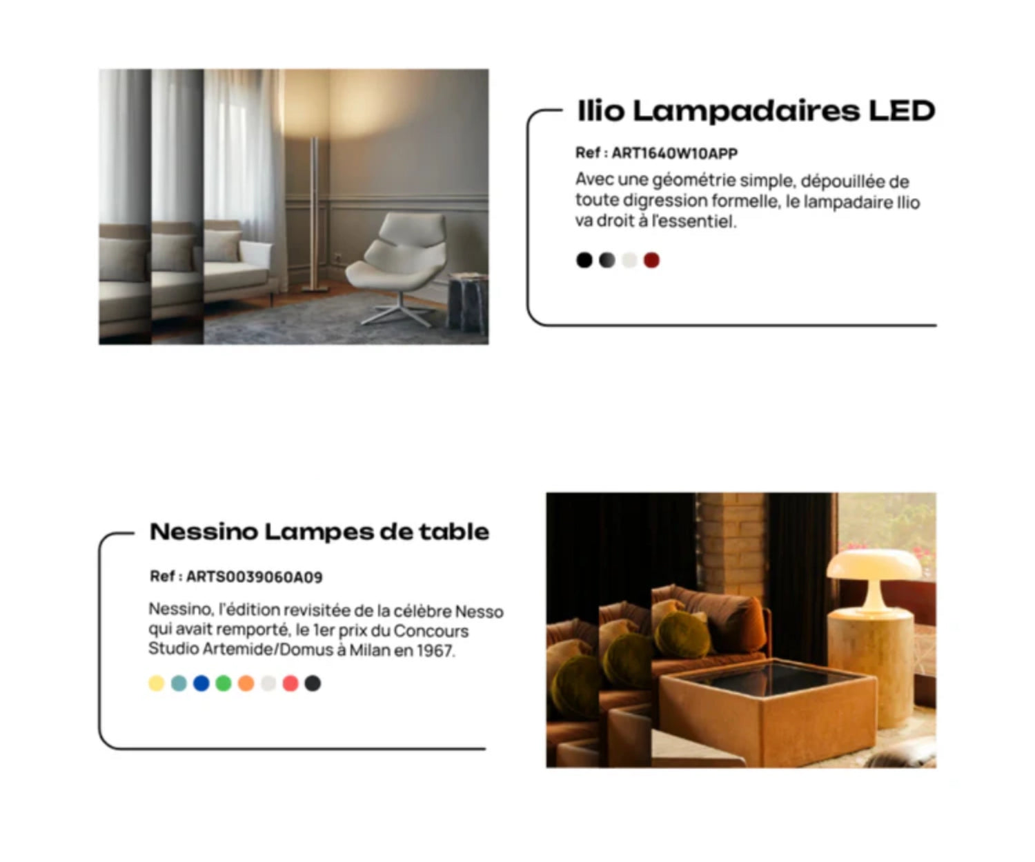 Plongez au cœur de l’univers Artemide : son histoire, les luminaires emblématiques que sont Nesso et Nessino, et une FAQ conçue pour éclairer chacune de vos interrogations. L’occasion parfaite de trouver la lampe qui sublimera votre intérieur.