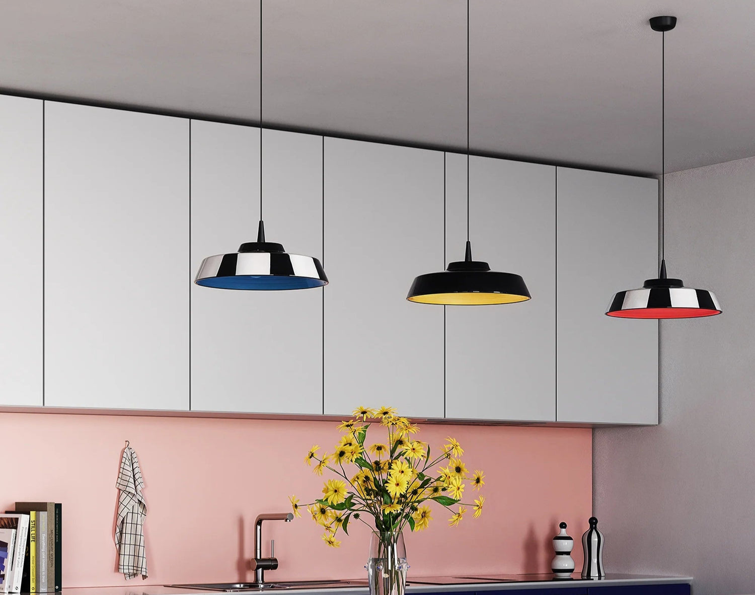 Dans une pièce sans arrivée électrique au plafond, privilégiez par ailleurs un modèle de suspension à installer par l’intermédiaire d’un câble modulable, à brancher directement au sol ou à relier à une sortie électrique murale. Pensez par exemple aux références “Aim” ou “String” chez Flos, “Santorini” chez Marset ou encore “Wireflow” chez Vibia, toutes disponibles en quelques clics à travers notre catalogue en ligne.