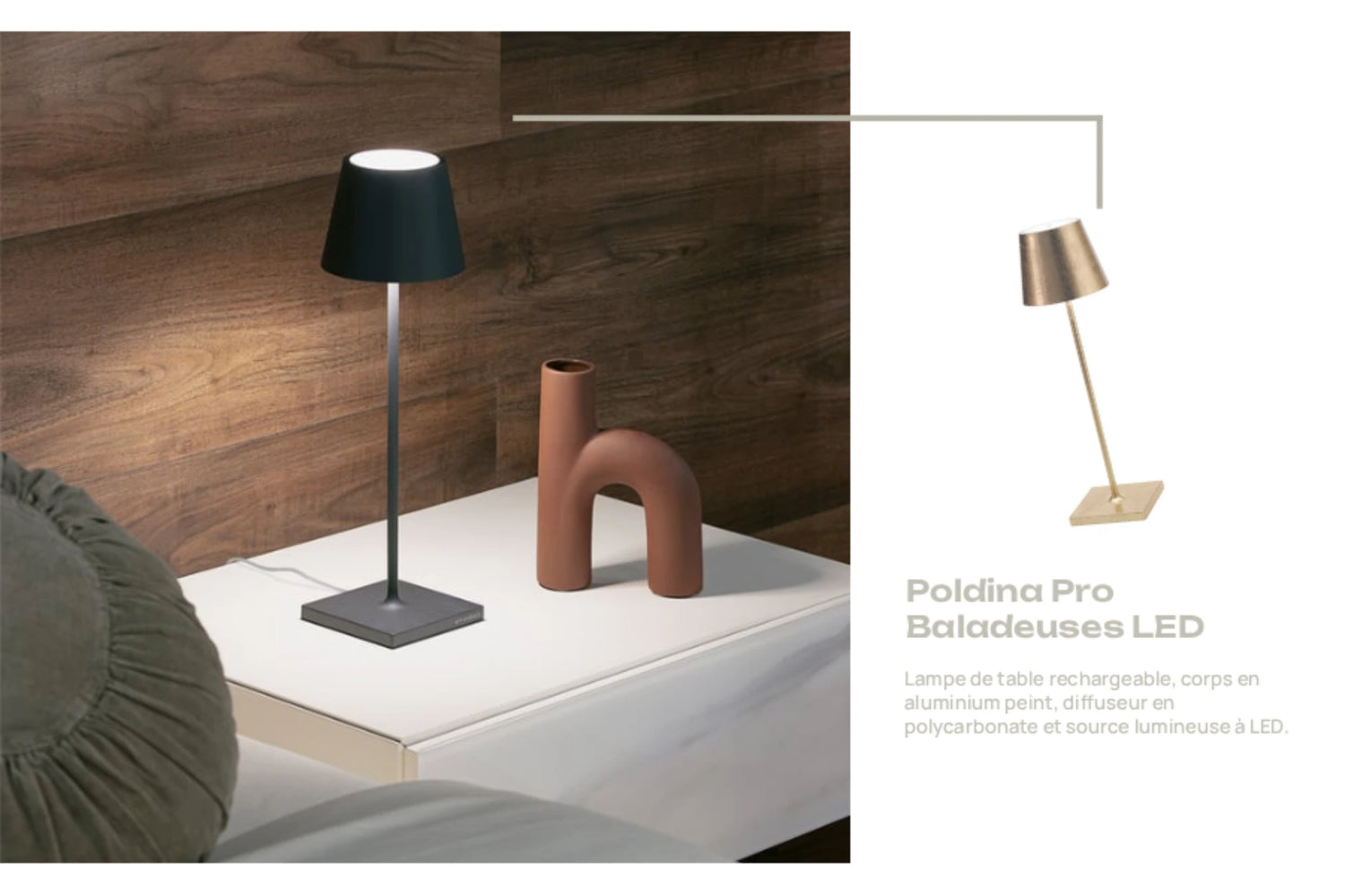 Parmi toutes ses créations, la Poldina Zafferano est sans conteste le produit qui a tout changé. Pensée comme une lampe de table Zafferano polyvalente, rechargeable et légère, elle devient rapidement l'éclairage préférée des hôtels, restaurants et particuliers. Sa forme simple, sa grande autonomie et sa facilité de déplacement en font une révolution dans l’univers des luminaires.