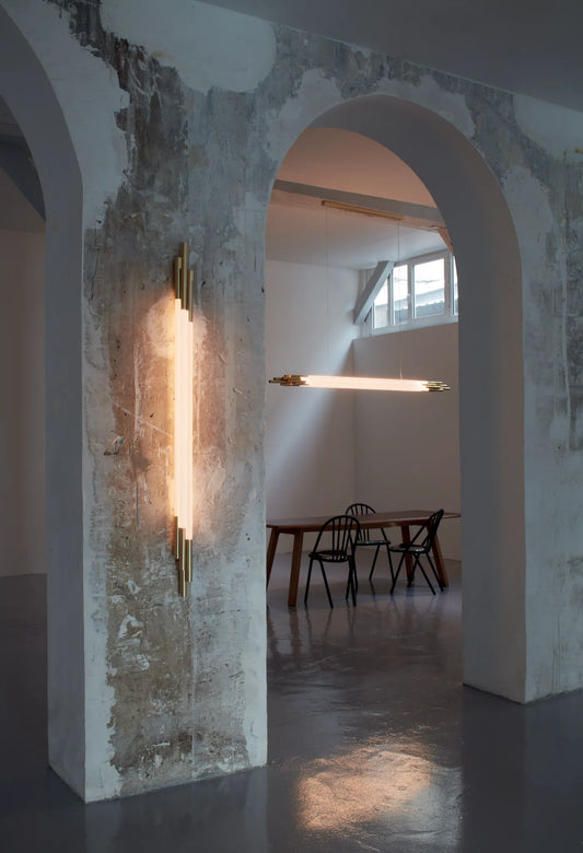 DCW Éditions aime à se jouer de l’espace et des conventions, pour cela l’éditeur collabore notamment avec Sébastian Summa, forgeron de formation à l’origine du design des appliques Org. Créées comme des étoiles filantes, les lampes Org Wall peuvent être installées aux murs de façon verticale ou horizontale, elles peuvent également être suspendues au-dessus d’une table de salle à manger par exemple.