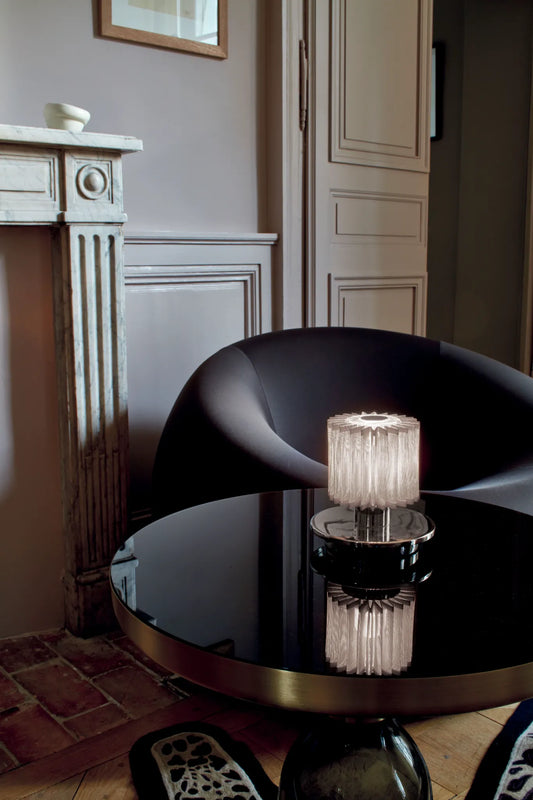 Pour illuminer ces nouveaux espaces, les designers ont imaginé des lampes extérieures capables de créer, en extérieur, la même atmosphère lumineuse qu’un luminaire d’intérieur. Pour ce faire, ils ont notamment joué avec les matériaux, à l’image d’Enzo Castellani qui a utilisé le verre pour créer une lampe extérieure délicate et élégante que l’on pourra déplacer au gré des envies sur la terrasse ou dans le jardin.