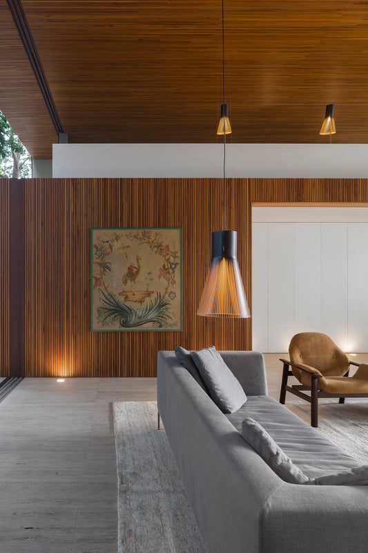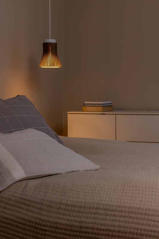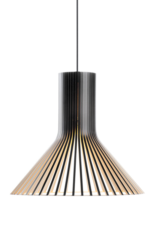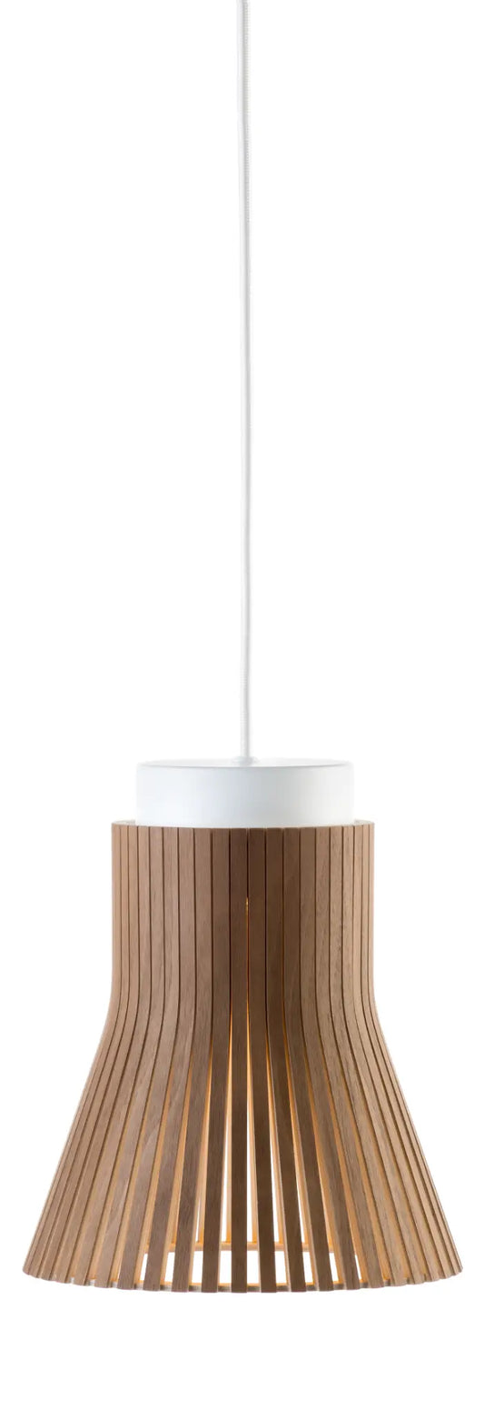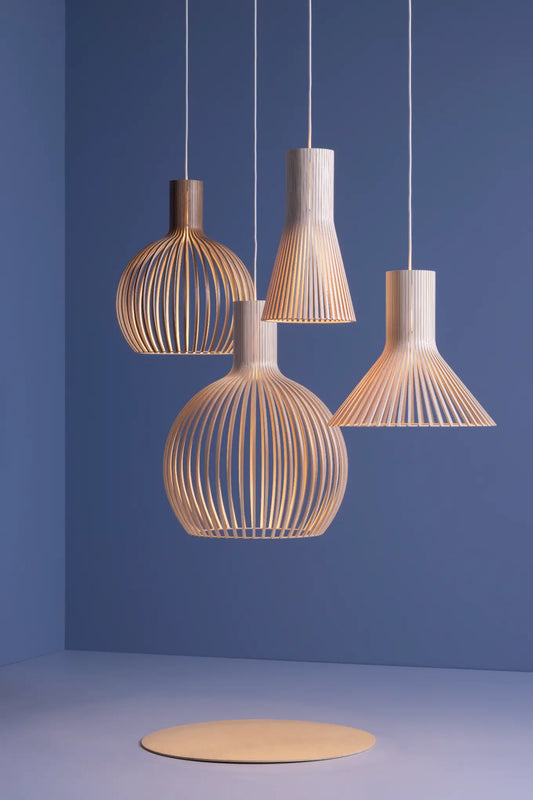 Au départ, ce sont des meubles en bois que Jusélius et Koho créent. Mais rapidement ils font face à un problème : leur clientèle ne trouve pas de luminaires à harmoniser avec leurs meubles. C’est ainsi que le tout premier luminaire Secto Design voit le jour : il s’agit de la suspension conique Secto 4200, aujourd’hui encore iconique de la marque. Il faut dire que cette toute première suspension remporte un franc succès dès son lancement : elle est à l’époque particulièrement innovante et singulière. Utiliser le bois comme matériau d’éclairage c’est en effet novateur et c’est ce qui fera la notoriété de Secto Design.