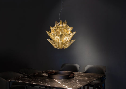 Toute cette recherche et l’union de ces différentes valeurs permettent d’imaginer des collections prestigieuses et des luminaires hautement artistiques. Les différentes suspensions Terzani font par exemple figure d’œuvres sculpturales, elles occupent l’espace de manière à attirer le regard tout en éclairant chaque pièce d’une lumière travaillée avec le plus grand souci du détail.