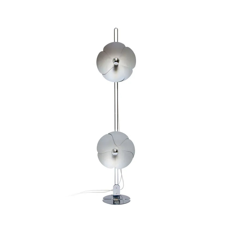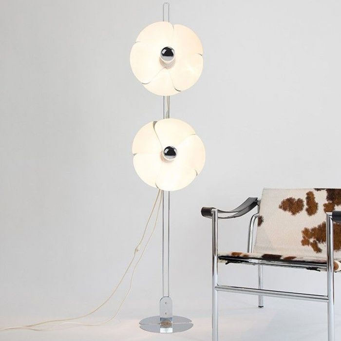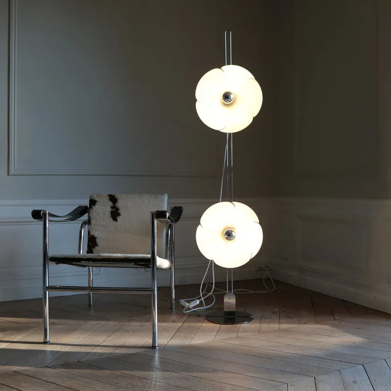 Le lampadaire Fleur 2093 signé Olivier Mourgue a été édité pour la première fois en 1967 par les Ateliers Disderot. Le dessin du designer français a été retrouvé dans les archives de la maison d’édition et est aujourd’hui réédité par la maison d’édition Disderot. Toute une gamme de luminaires est dessinée autour de ce même thème de la fleur. 2093 est un lampadaire poétique, technique et à la fois moderne. Ses abat-jours au design de fleur rappel les traits d’un moulinet en papier.