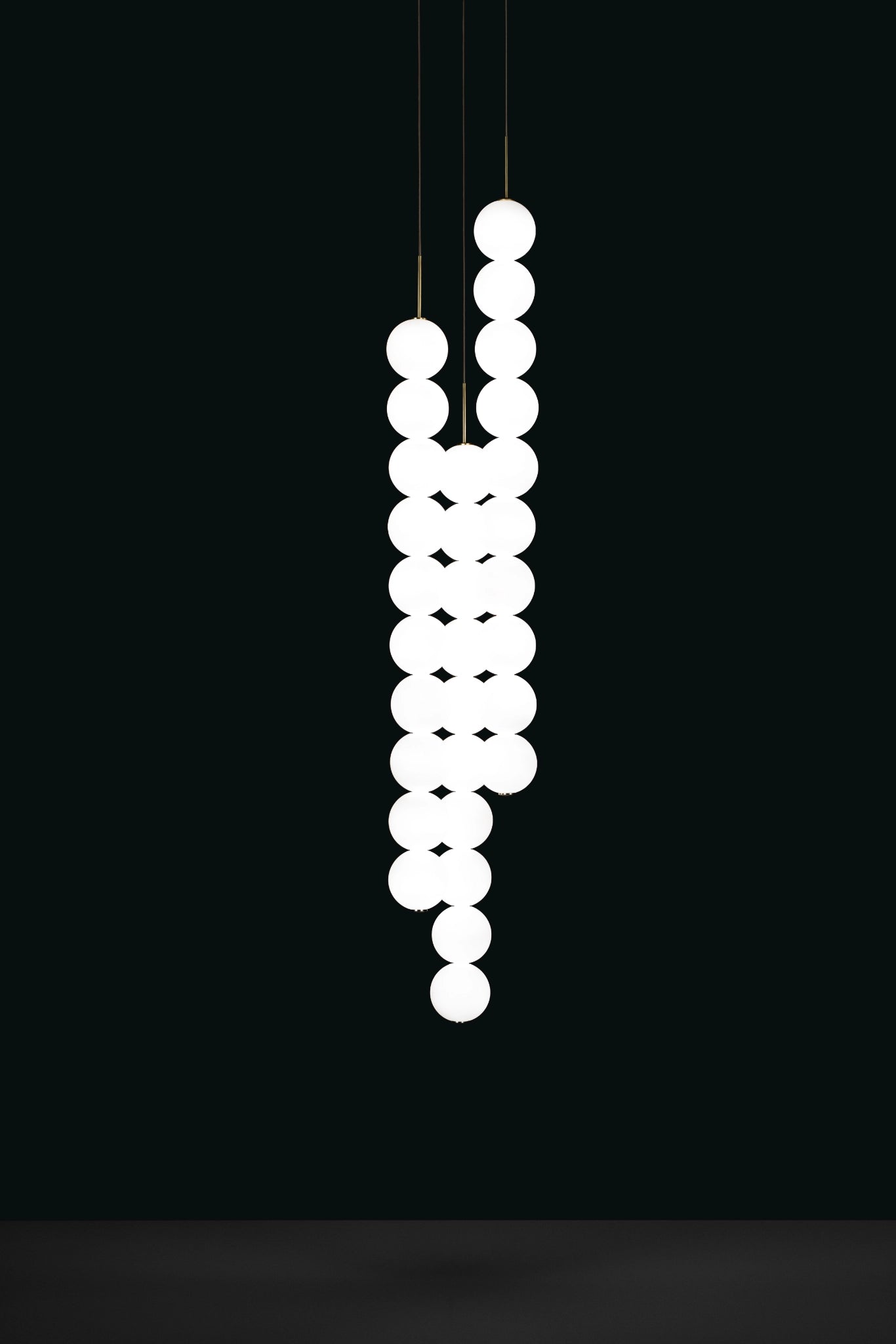 Utilisé pendant des siècles comme outil pour enseigner les mathématiques, l'abaque a été trouvé sous une forme ou une autre à travers le monde antique. Terzani a vu la beauté et la pureté mathématique du boulier. Les artisans de la marque ont transformé cette inspiration en une nouvelle collection de suspensions modulaires dont la flexibilité permet des configurations complexes et magnifiques. Chaque module, ou brin d'Abacus contient un ensemble personnalisé de verres opales ronds soufflés à la bouche qui émettent une lumière douce et uniforme. En raison de sa personnalisation, la lampe Abacus convient aussi bien dans une maison que dans un espace commercial, et ses configurations presque infinies vous garantissent toujours de trouver la bonne solution. Attention: il est nécessaire d'avoir une hauteur sous plafond supérieure à 340cm pour installer cette suspension.