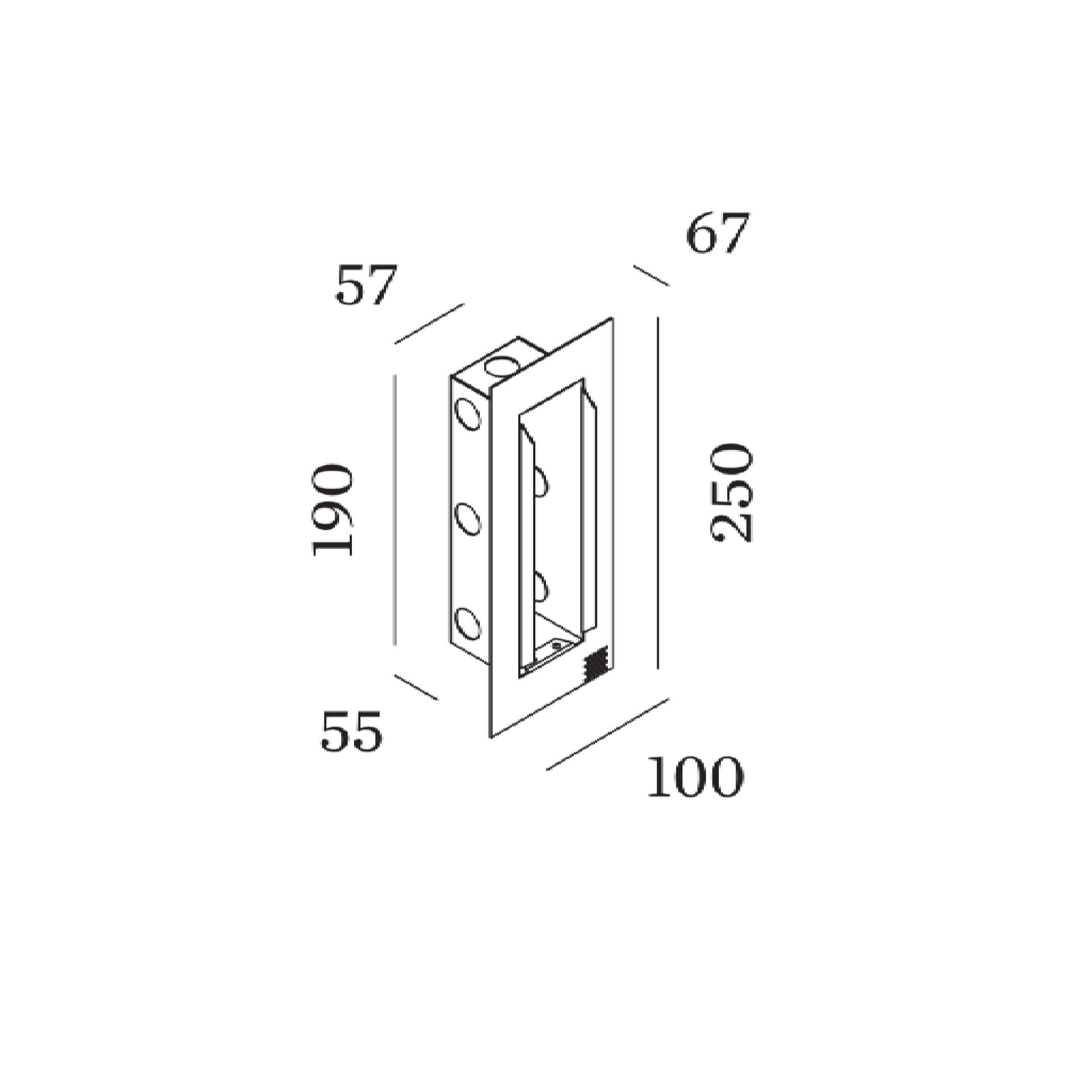 Avec ses dimensions de 100 × 67 × 250 mm, il s’intègre parfaitement dans des découpes de 191 × 58 mm, assurant un maintien optimal du luminaire. Ce boîtier est idéal pour les projets résidentiels ou professionnels souhaitant un rendu soigné, où l’éclairage s’intègre de manière discrète et élégante à l’architecture.