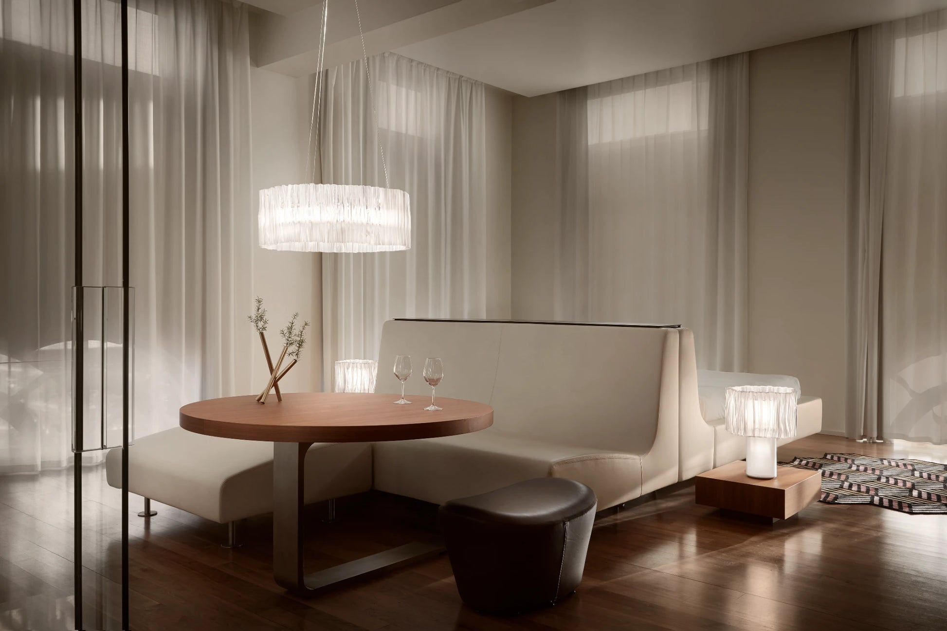 Fabriquée à la main en technopolymère Lentiflex®, Accordéon tire parti de matériaux innovants pour produire un effet lumineux riche et chaleureux, tout en conservant une légèreté visuelle exceptionnelle. Chaque exemplaire est unique, résultat d’un savoir-faire artisanal italien allié à une approche industrielle rigoureuse.