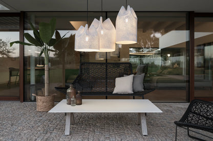 Agasallo, qui signifie « cadeau » en galicien, est la nouvelle collection d'Héctor Serrano. Ses formes et sa peinture à la main génèrent des effets de lumière uniques qui sont projetés dans l'espace créant une atmosphère unique. Disponible en quatre tailles, la suspension Agasallo 2 est l'une des 4 lampes qui composent la collection. Avec un diamètre de 32 cm, ce luminaire fabriqué à la main en Espagne peut être combiné avec les autres pièces de la collection pour créer des compositions pour n'importe quel espace. C'est dans sa simplicité que réside son originalité. Agasallo est, sans aucun doute, un cadeau pour les sens. Cette suspension existe en blanc, beige, gris ou taupe.