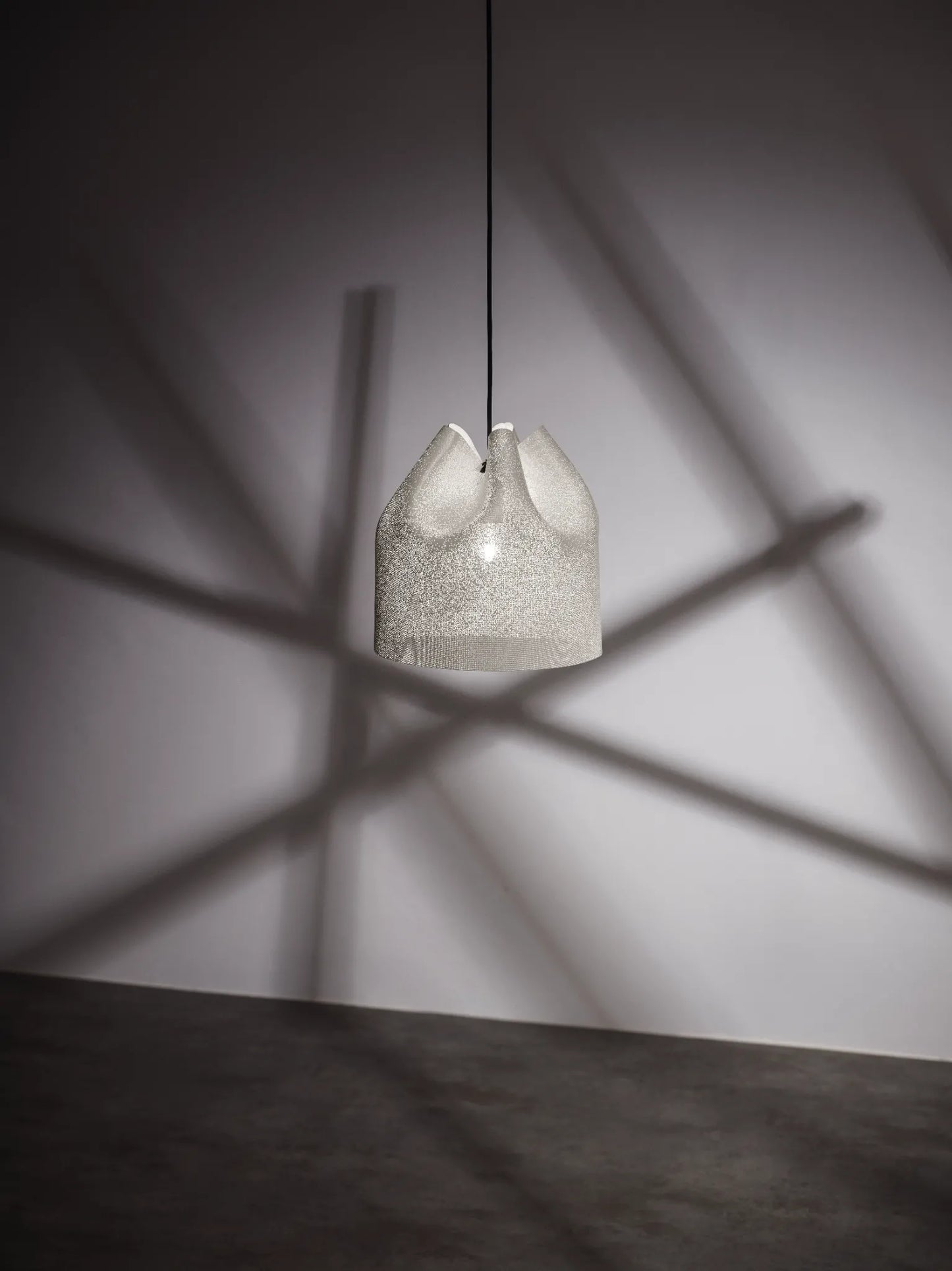 Agasallo, qui signifie « cadeau » en galicien, est la nouvelle collection d'Héctor Serrano. Ses formes et sa peinture à la main génèrent des effets de lumière uniques qui sont projetés dans l'espace créant une atmosphère unique. Disponible en quatre tailles, la suspension Agasallo 2 est l'une des 4 lampes qui composent la collection. Avec un diamètre de 32 cm, ce luminaire fabriqué à la main en Espagne peut être combiné avec les autres pièces de la collection pour créer des compositions pour n'importe quel espace. C'est dans sa simplicité que réside son originalité. Agasallo est, sans aucun doute, un cadeau pour les sens. Cette suspension existe en blanc, beige, gris ou taupe.
