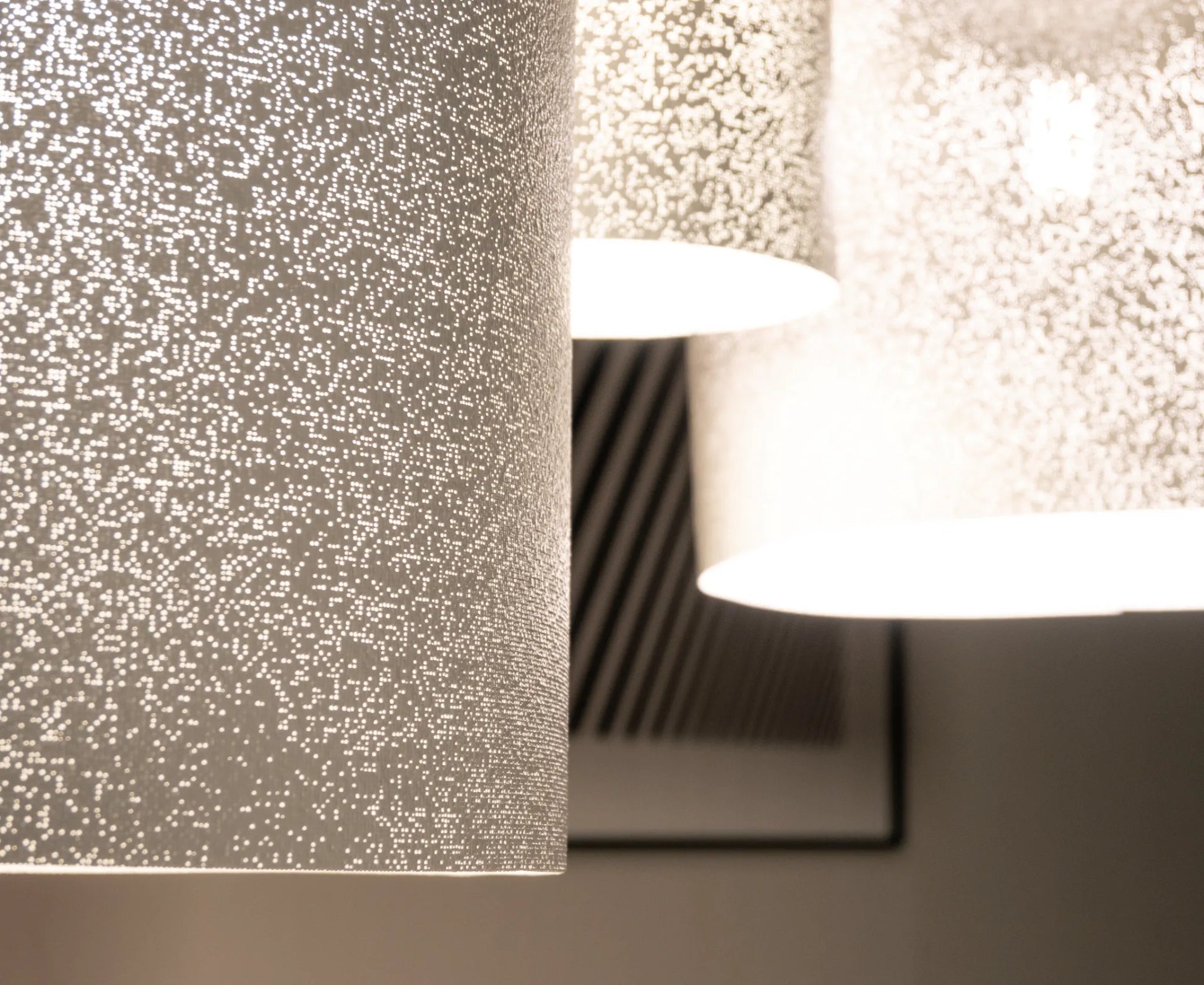 Agasallo, qui signifie « cadeau » en galicien, est la nouvelle collection d'Héctor Serrano. Ses formes et sa peinture à la main génèrent des effets de lumière qui sont projetés dans l'espace créant une atmosphère unique. Agasallo 4 est l'une des suspensions les plus volumineuses de la collection de Héctor Serrano. La collection, disponible en quatre tailles, peut être combinée à différentes hauteurs, créant de multiples compositions pour n'importe quel espace. Certifié IP64, Agasallo 4 est également disponible pour éclairer les espaces extérieurs. Cette suspension existe en blanc, beige, gris ou taupe.