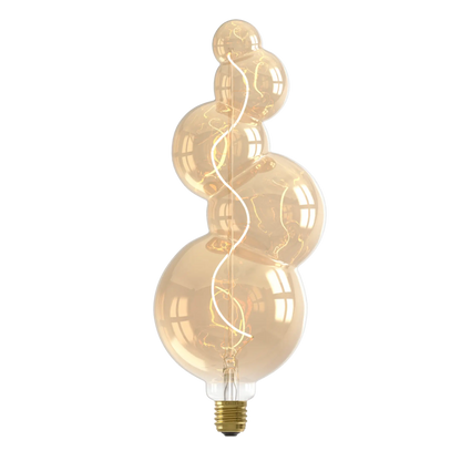 Ampoule décorative couleur gold avec filament courbé. La finition dorée confèrent à cette source de lumière une touche classique. S'adapte sur une douille E27, en suspension ou en lampe à poser.