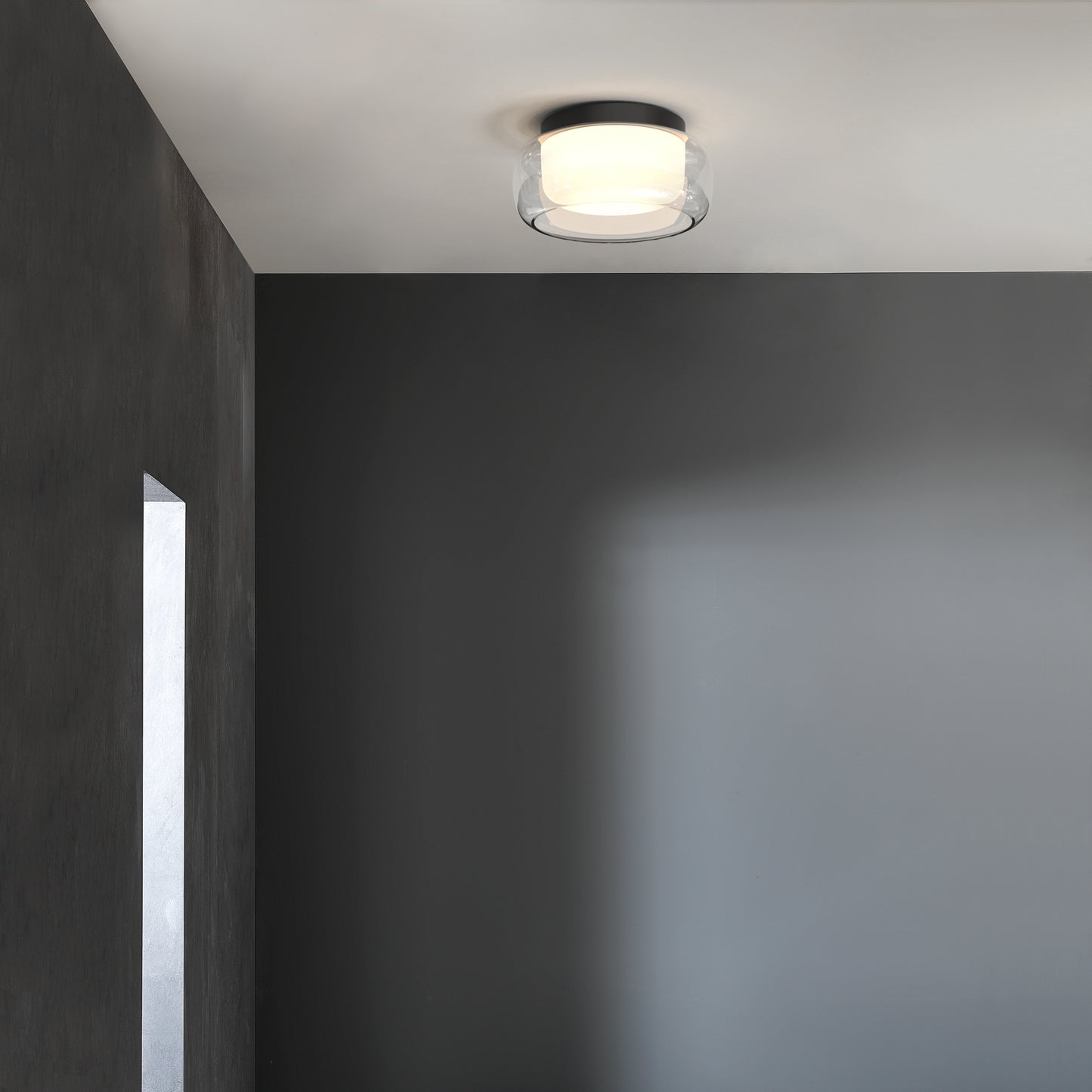 Avec ses courbes organiques inspirées de formes elliptiques, le plafonnier Aquina adoucit l'esthétique d'une salle d'eau et apporte un éclairage fonctionnel d'ambiance quand il est utilisé comme source de lumière principale. Son double abat-jour en verre, remplaçable, est sûr de par son design. Il est dépourvu de fixations visibles pour un rendu homogène. Classe II IP44 - Zones 2 et 3