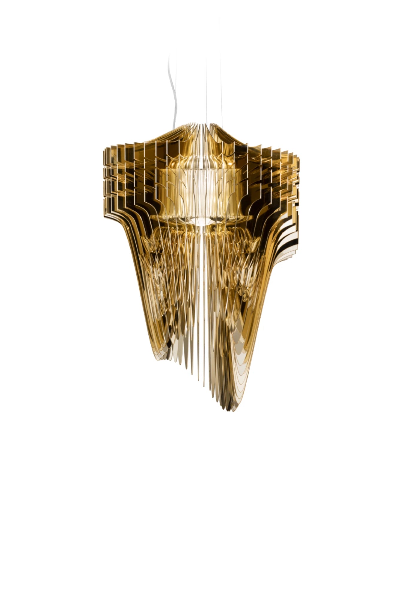 Ce lustre de luxe plutôt impressionnant est la pièce idéale pour réorganiser et rafraîchir l'ambiance, fournissant une lumière naturelle qui suscitera certainement de nombreuses conversations. Grâce à l'utilisation de matériaux modernes, cette lumière transparente est polyvalente et très résistante. Le matériau en polycarbonate rend sa surface "multiforme", comme si elle était formée de nombreux petits prismes. La suspension Slamp Aria Transparent est une expression somptueuse et brillante du design et fait partie de la plus grande collection Aria. Cet extra-large translucide avec une lumière noire superposée recouverte de poudre d'or brillant peut être adapté à de nombreux domaines et leur conférer un charme particulier. Surlignée par ses lignes fluides en cascade, la suspension transparente Aria est une pièce magnifiquement frappante qui s'intégrera dans de nombreux styles.