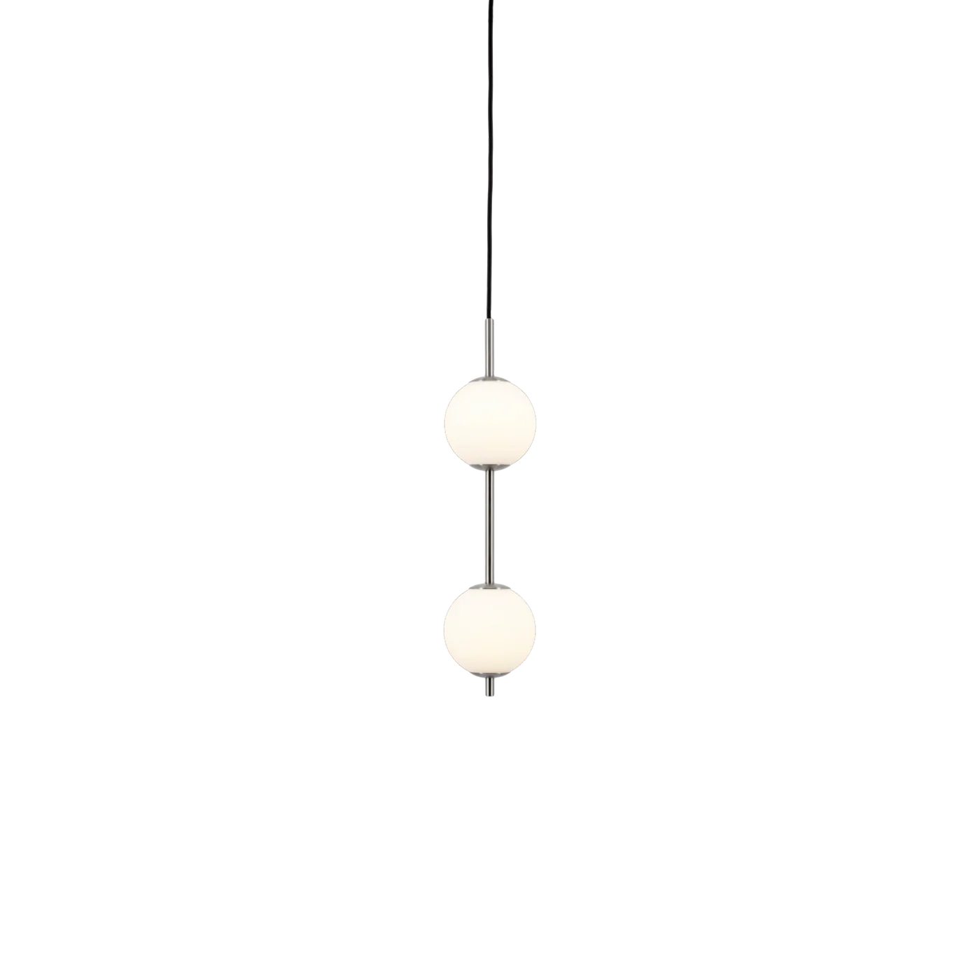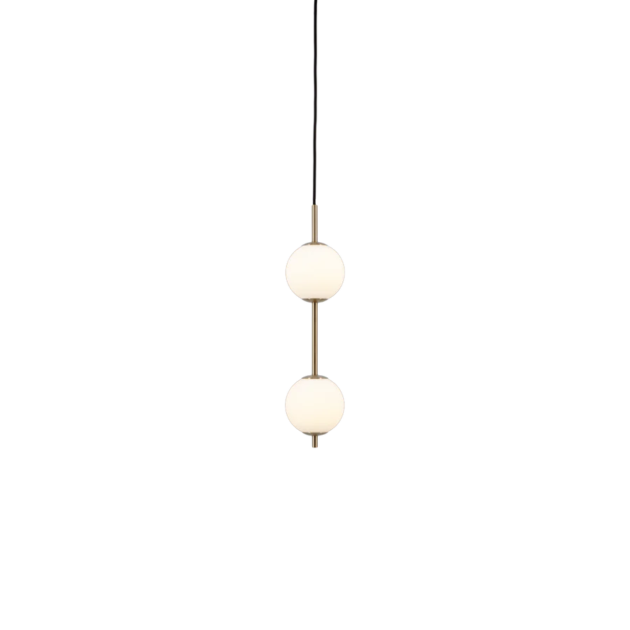 La suspension Audrey 2 revisite l’élégance iconique de la collection Audrey dans une version verticale à deux sphères lumineuses, pensée pour sublimer les intérieurs contemporains avec délicatesse et sophistication. Sa silhouette élancée, composée de globes en verre opalin soufflé à la bouche, évoque un collier de perles suspendu, apportant une présence sculpturale tout en légèreté.