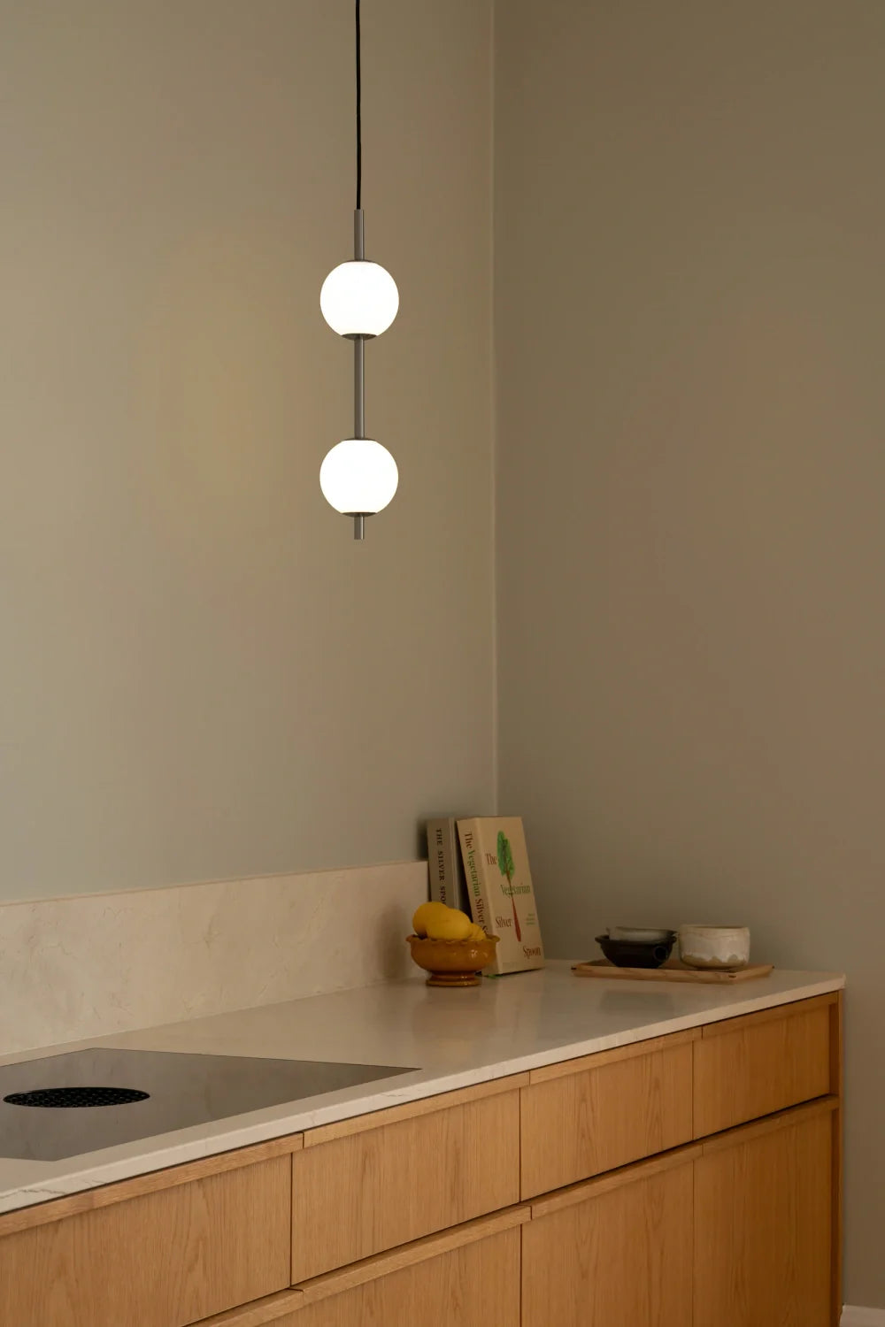 Les deux sphères diffusent une lumière douce, homogène et non éblouissante, idéale pour créer une atmosphère chaleureuse et apaisante. Installée au-dessus d’une table, dans un escalier, un couloir ou en composition dans un angle de pièce, Audrey 2 attire le regard sans jamais dominer l’espace. Son design vertical en fait un choix parfait pour les pièces à belle hauteur sous plafond ou pour structurer visuellement un volume.