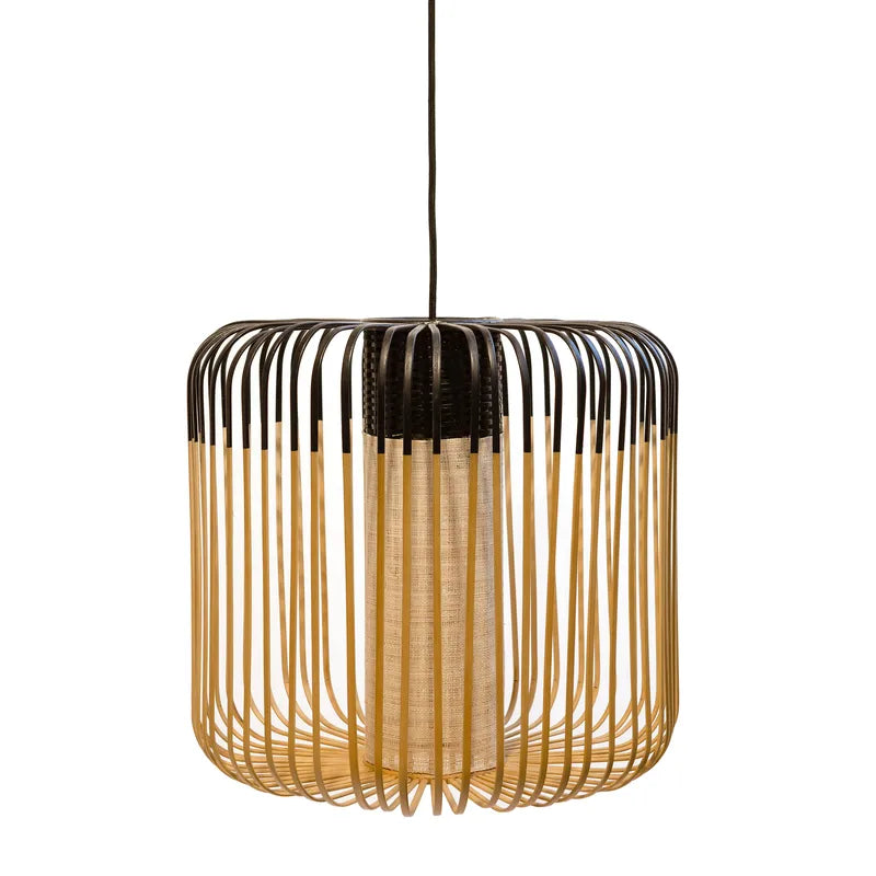 La suspension bamboo est composée d’un diffuseur cylindrique en fibre naturelle et d’un abat-jour en tige de bambou qui projette une ombre délicate sur les murs. La lumière est donc tamisée, douce et parfaite pour une ambiance de zénitude. Une inspiration que nous devons à la rencontre d’un savoir-faire artisanal et de matériaux bruts et authentiques. Elle existe en différentes tailles et coloris.