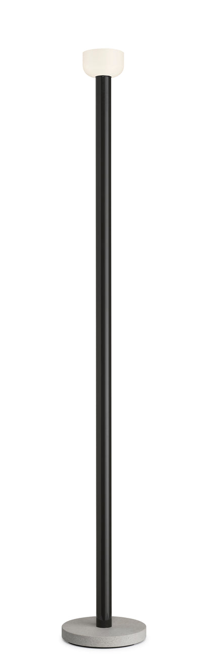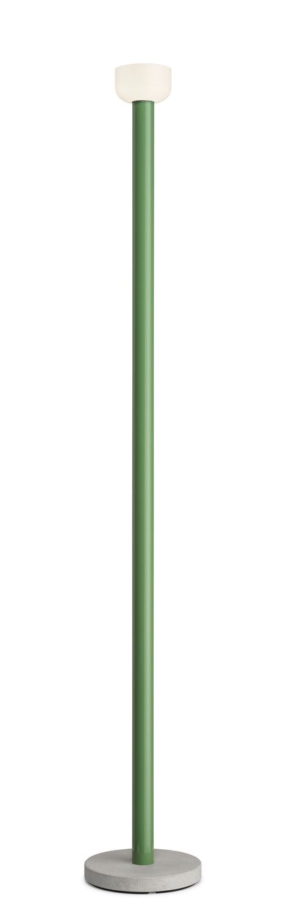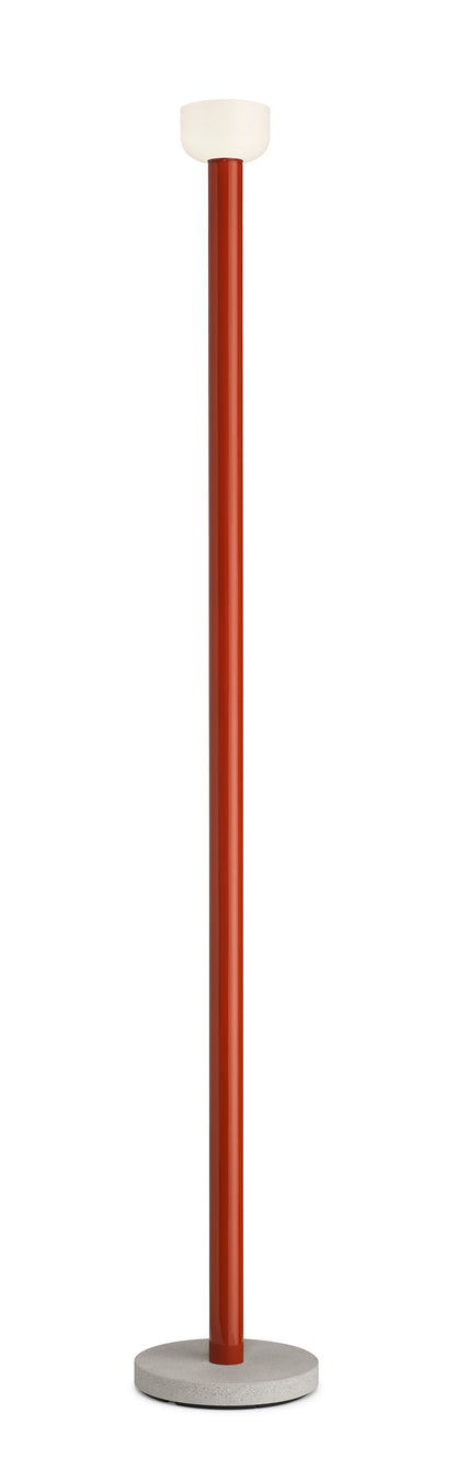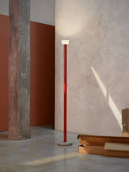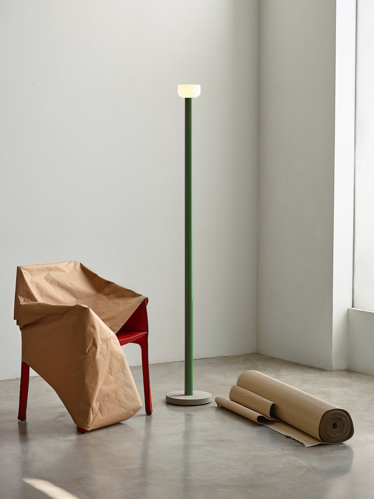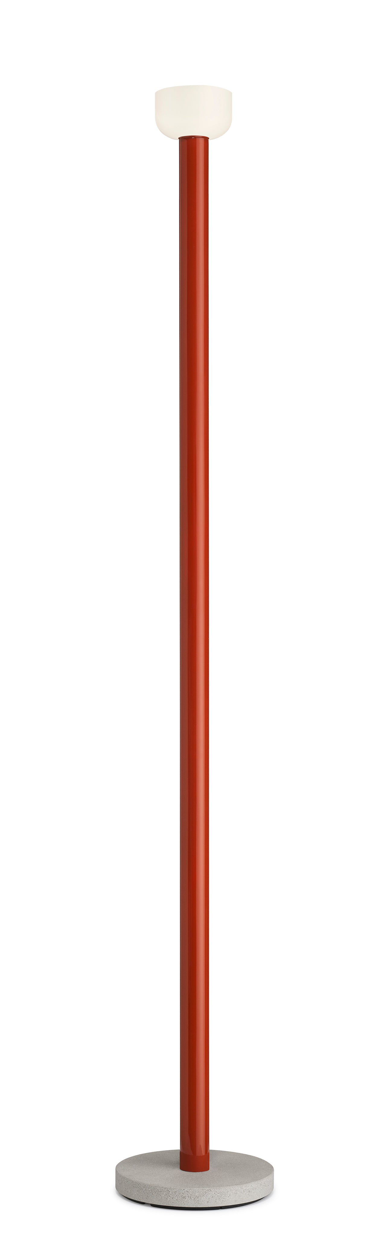 Bien ancré au sol grâce à sa base en ciment, Bellhop floor se positionne dans un angle de pièce pour apporter une lumière complémentaire, indirecte et chaleureuse, et ajouter une touche colorée pour ceux qui oseront le rouge ou le vert.