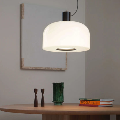 La Bellhop Glass S2 est une suspension élégante conçue par Edward Barber et Jay Osgerby de la marque Flos. Fabriquée en verre opalin triplex et en aluminium, elle offre un éclairage direct non éblouissant grâce à une ouverture inférieure protégée par un élément en aluminium. Cette conception permet une diffusion homogène de la lumière, créant une ambiance chaleureuse et accueillante. Disponible en finitions blanc, cioko (noir) et aluminium brillant.