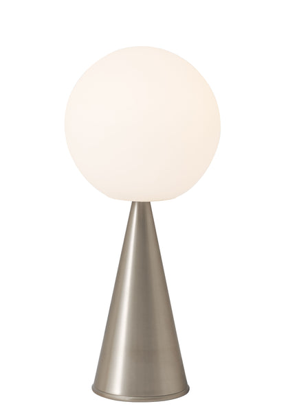 Une simple sphère, posée dans un équilibre apparemment impossible, sur un cône qui lui sert de base. Une composition sans prétention, enrichie par l'extraordinaire équilibre de ses proportions et la discrétion élégante des matériaux non réfléchissants. La lumière est diffusée et valorisée par la simplicité géométrique du design. En concevant Bilia, Gio Ponti avait imaginé une version plus petite dans une gamme de couleurs dynamiques. À partir des notes manuscrites du projet original, Fontana Arte propose Bilia Mini dans de nouvelles variations chromatiques à couper le souffle.