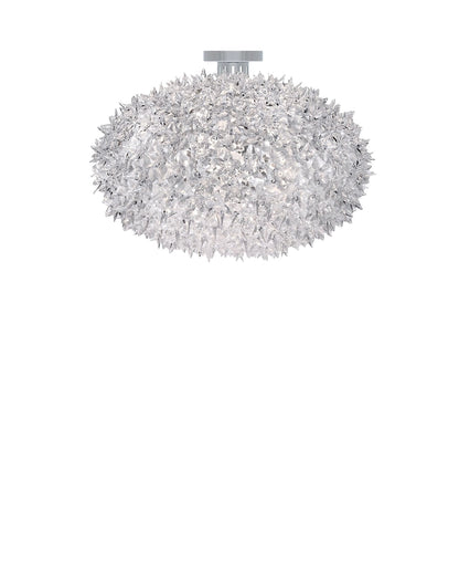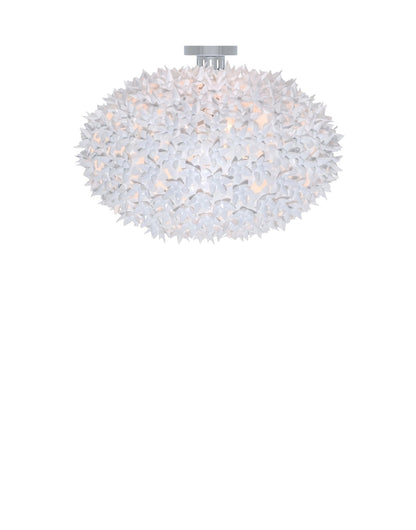 La gamme de luminaires Bloom, de forme elliptique, se distingue par l'originalité de sa structure recouverte de scintillantes fleurs aussi pures et précieuses que du cristal. Les ampoules, positionnées sur la structure interne, diffusent, à travers les fleurs, le faisceau lumineux qui se réfléchit sur les surfaces miroitantes des pétales en libérant mille reflets.