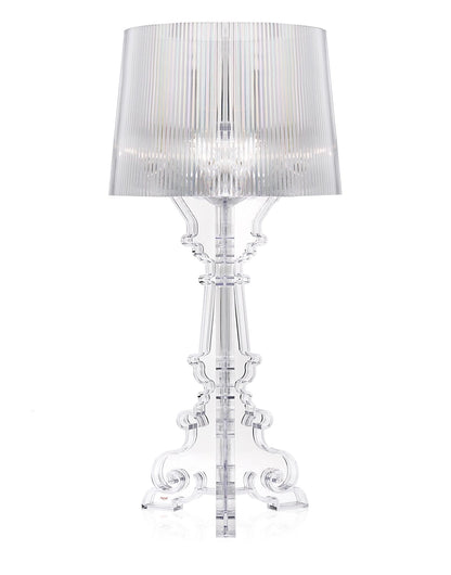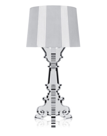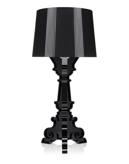 Bourgie allie classicisme, richesse et tradition à l'innovation technologique. Le pied, de style baroque, se compose de trois niveaux décorés qui s'entrecroisent, tandis que le grand abat-jour paré d'un effet plissé crée un jeu de mille reflets quand la lampe est allumée. Grâce au système spécial de fixation de l'abat-jour, il est possible d’obtenir trois hauteurs différentes, qui peuvent être modifiées au gré de vos envies en fonction de l’utilisation prévue : 68, 73 et 78 centimètres.