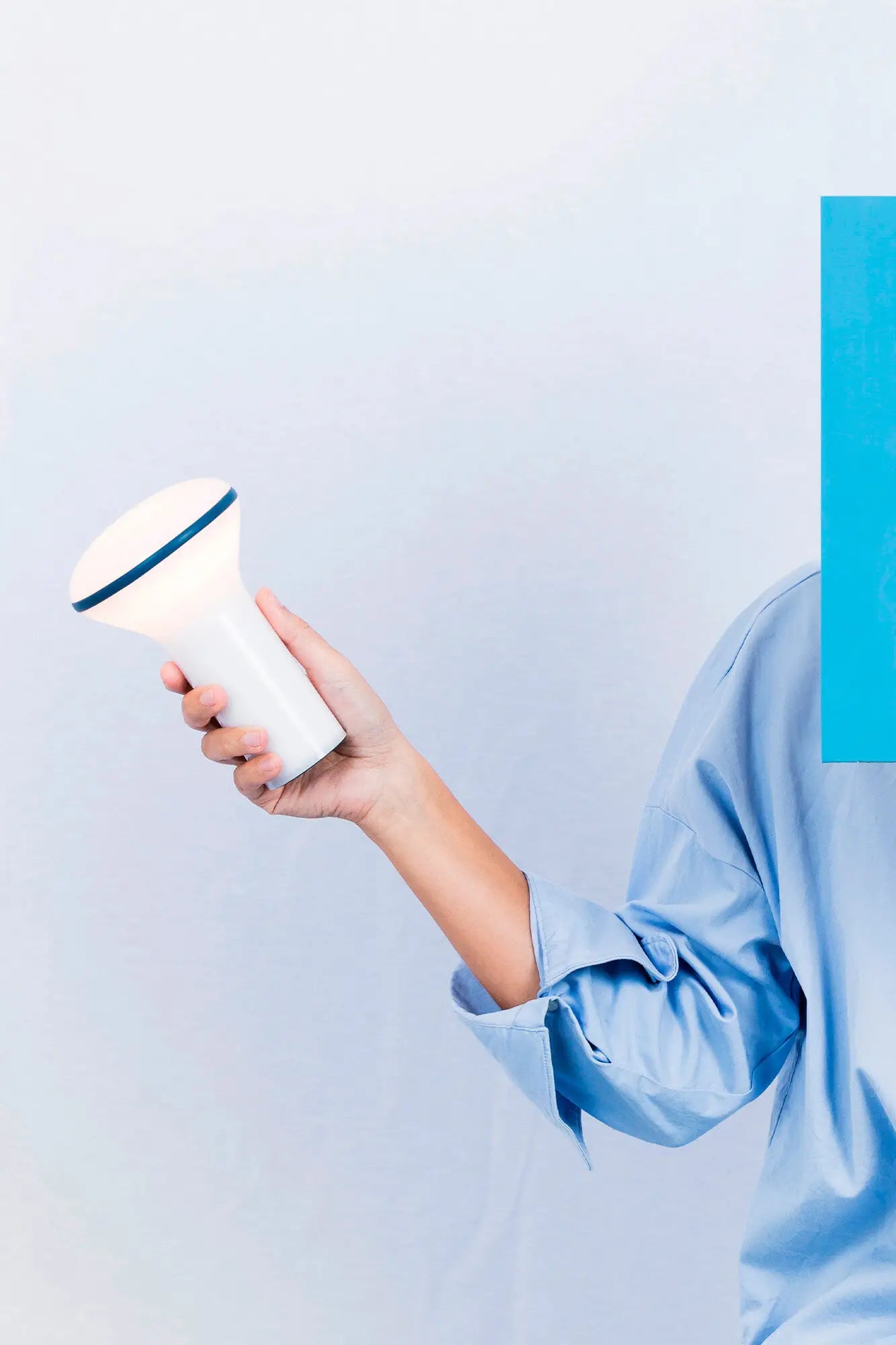 La lampe portable BUDDY, imaginée par le designer Andreu Carulla, revisite l'esprit de la lanterne traditionnelle avec un design moderne et minimaliste. Sa structure légère en polycarbonate bleu et blanc opale en fait un objet pratique et esthétique pour tout intérieur. Conçue pour éclairer des deux côtés, elle diffuse une lumière ambiante chaleureuse grâce à sa technologie LED intégrée. Avec une température de couleur de 2700K et une intensité lumineuse réglable sur trois niveaux, BUDDY s’adapte à vos besoins en éclairage d’appoint, que ce soit sur une table, une étagère ou en guise de veilleuse. Elle se recharge facilement via un câble magnétique USB (inclus) et fonctionne avec une batterie intégrée. Idéale pour créer une ambiance douce et intime, cette lampe nomade combine fonctionnalité et style. Parfaite pour les amateurs de design contemporain à la recherche d’une solution lumineuse portable et élégante.