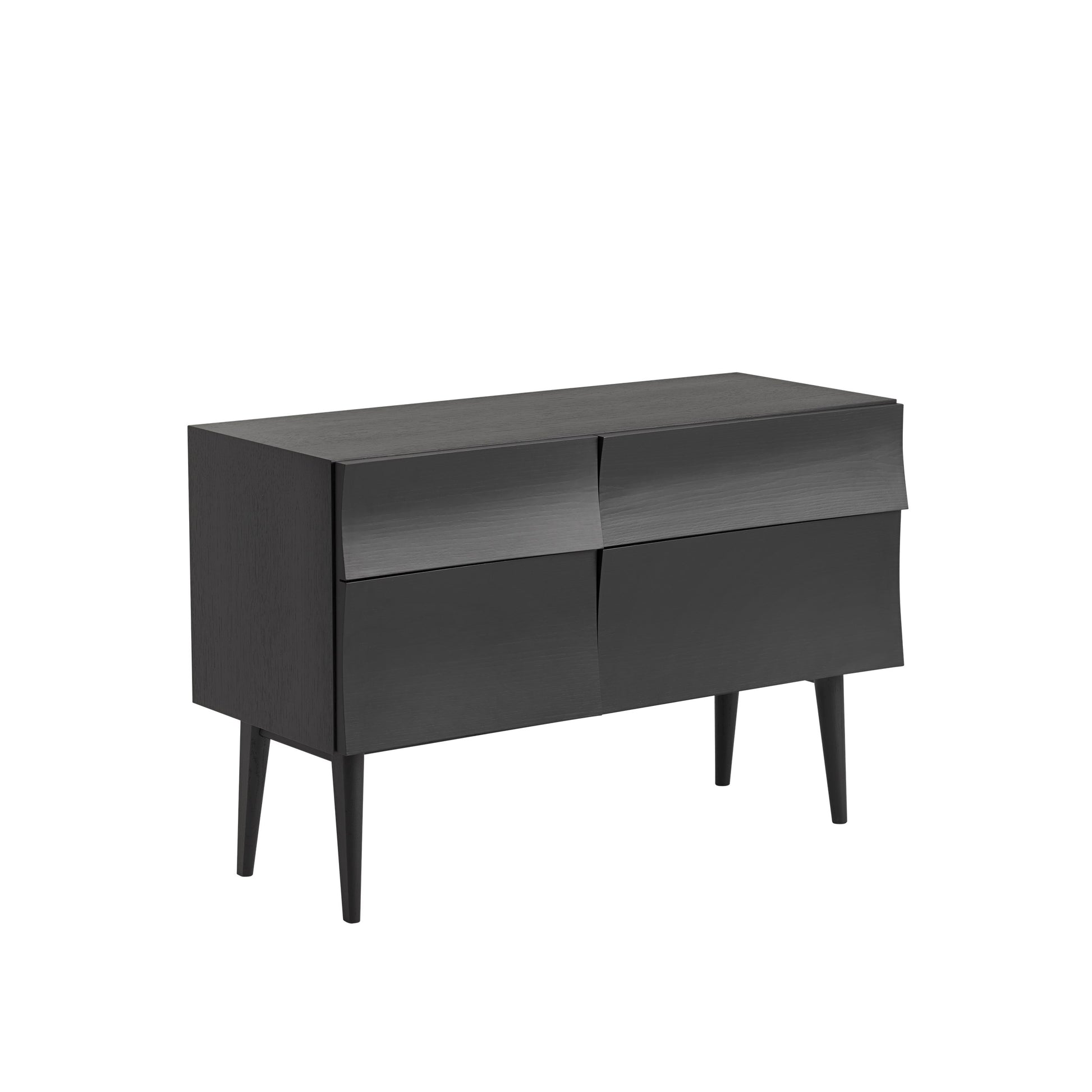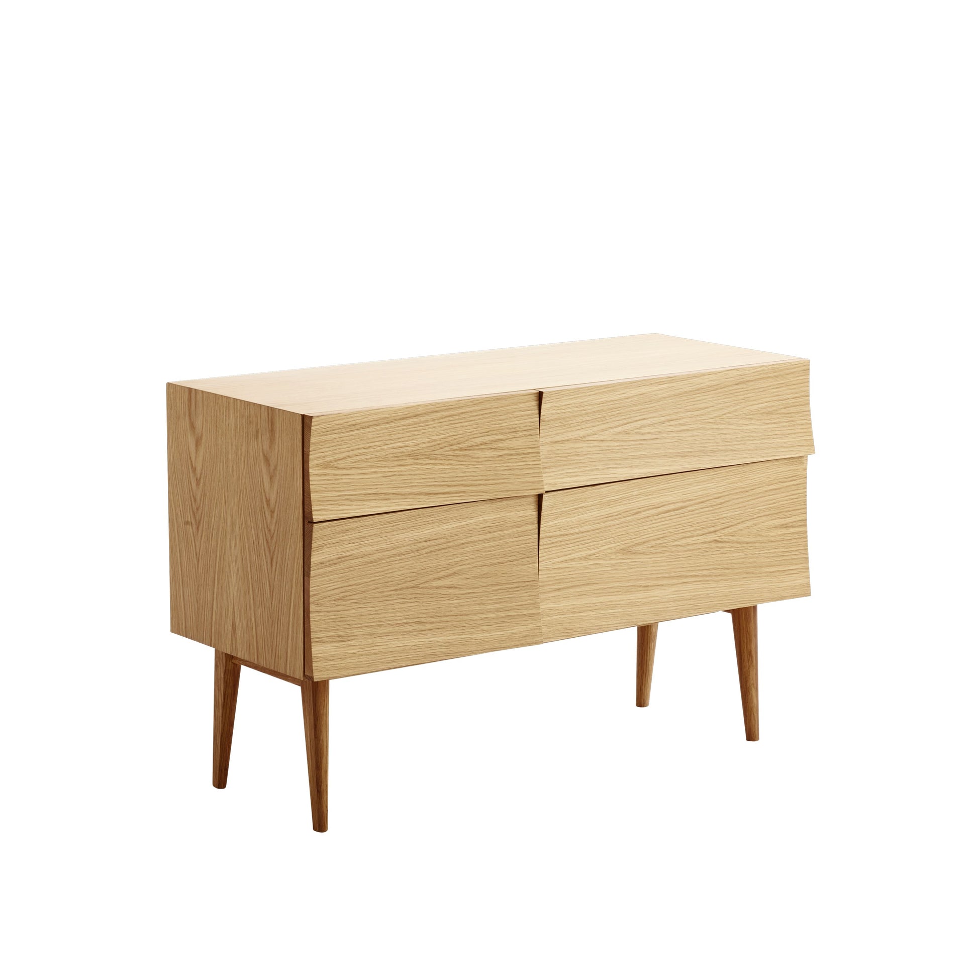 Le buffet Reflect est une unité de rangement d'une longueur considérable qui fonctionne à la fois dans un salon et des espaces de bureau plus grands. Avec une surface incurvée dans un cadre robuste, le buffet Reflect est une version moderne du style scandinave moderne classique du milieu du siècle. Le Buffet/Sideboard Reflect petit modèle est fabriqué en chêne massif avec un placage de chêne sur la face arrière pour permettre de l'utiliser en séparateur de pièce. Dépoussiérez souvent et soigneusement le buffet avec un chiffon doux en suivant le grain ou enlevez les particules de poussière abrasives. Nettoyez régulièrement avec un chiffon humide. Séchez immédiatement avec un chiffon. Le buffet ne doit pas être soumis à une humidité excessive, à la chaleur ou à la lumière directe du soleil.