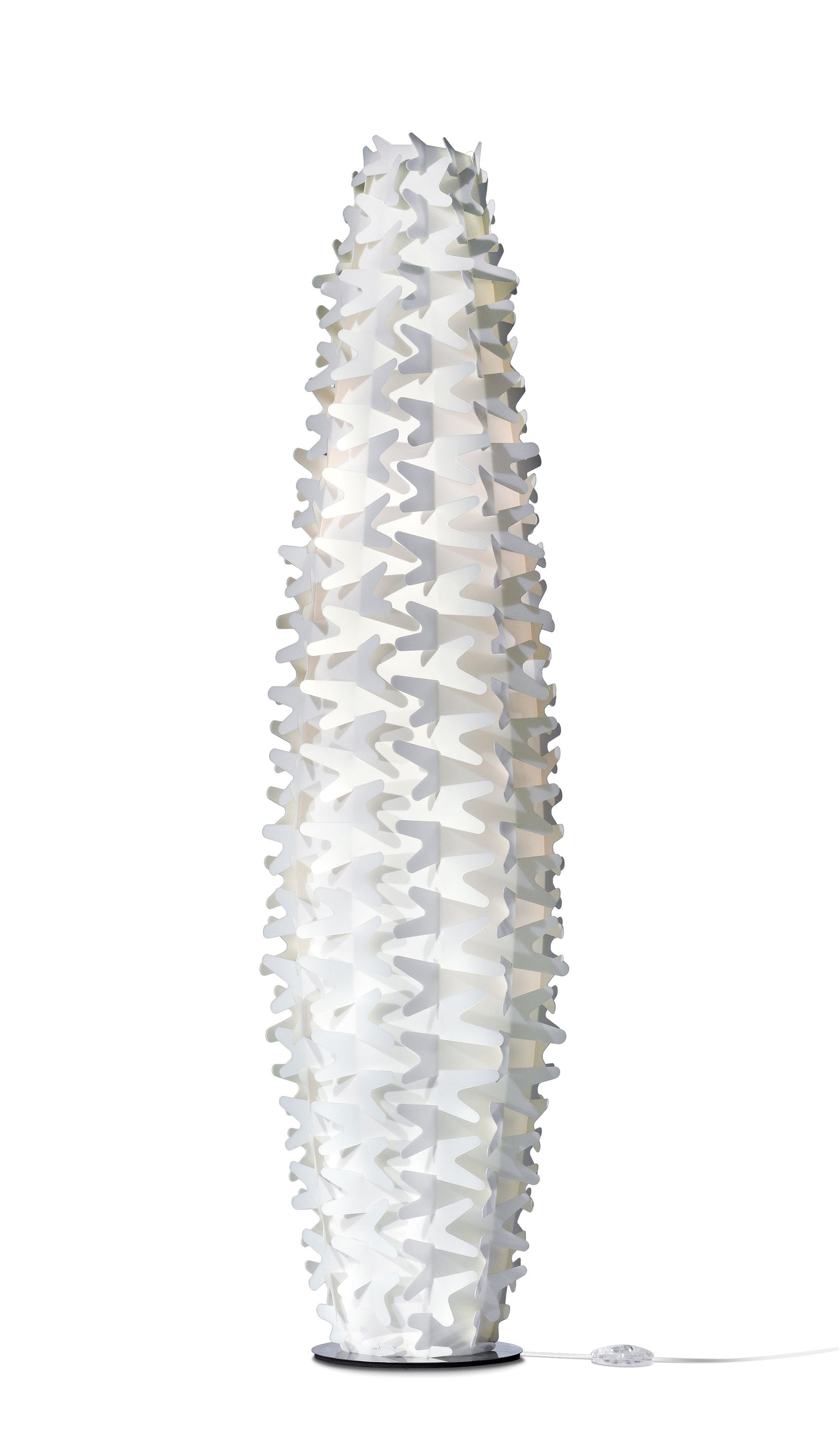Inspiré par la résilience et l’élégance naturelle de la plante dont il porte le nom, le lampadaire Cactus de Slamp combine design géométrique audacieux et technologie de pointe. Disponible en Lentiflex® ou Opalflex®, deux matériaux innovants exclusifs à la marque, Cactus se distingue par son éclat lumineux unique et ses reflets prismatiques qui varient selon l’angle de vue.