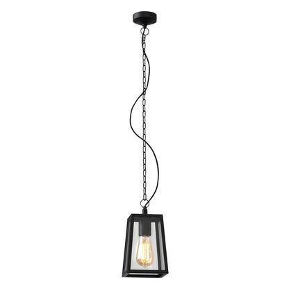 Suspension d'extérieur à placer au dessus de votre entrée ou de votre salon de jardin. Disponible en trois finitions avec verre transparent. Norme IP23. Classe 1.