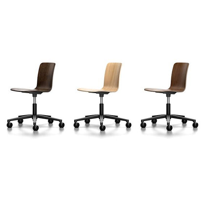 HAL Ply Studio appartient à la gamme de sièges HAL de Jasper Morrison. Le piètement pivotant réglable en hauteur, sur roulettes, assure toutes les fonctions essentielles d'un siège de bureau et sa coque d'assise en contreplaqué suggère une élégance qui en fait le siège parfait pour chaque bureau à domicile.