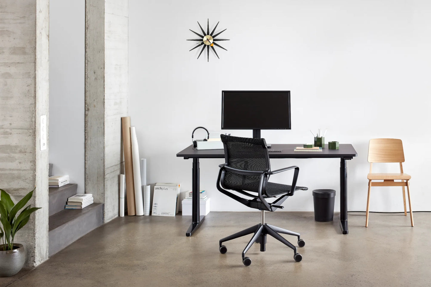 La Chaise Tout Bois éditée par Vitra correspond à l'une des variantes de la création de Jean Prouvé de 1941, dont la construction ne nécessite aucune vis. La hauteur et la géométrie de l'assise sont les mêmes que celles de la chaise Standard et répondent donc aux normes et exigences actuelles. L'aspect et le toucher chaud du bois offrent un contraste intéressant avec la conception structurelle pratique, typique de l'approche fonctionnelle de Prouvé. La Chaise Tout Bois est disponible en chêne clair ou en chêne teinté foncé.