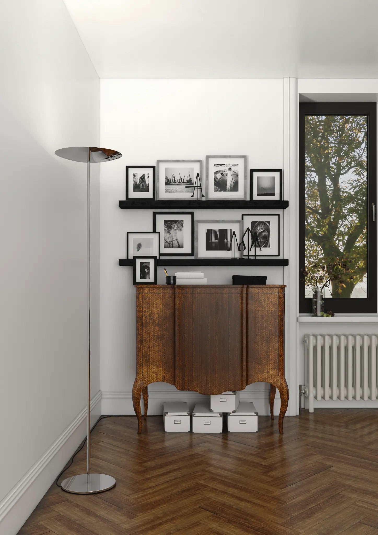 Belux Classic porte bien son nom. Grâce à son élégance sobre et intemporelle, il est toujours moderne aujourd’hui — près de 30 ans après sa création. Mais l’utilisation d’une puissante ampoule LED est une nouveauté. Avec plus de 8 000 lumens, elle fournit une forte lumière indirecte. La répartition lumineuse est extrêmement large, ce qui permet d’éclairer de grandes surfaces sans problème. Seule la consommation d’énergie est modeste : belux classic est extrêmement efficace avec seulement 80 W. Les finitions sont disponibles en chrome brillant, noir mat et blanc.