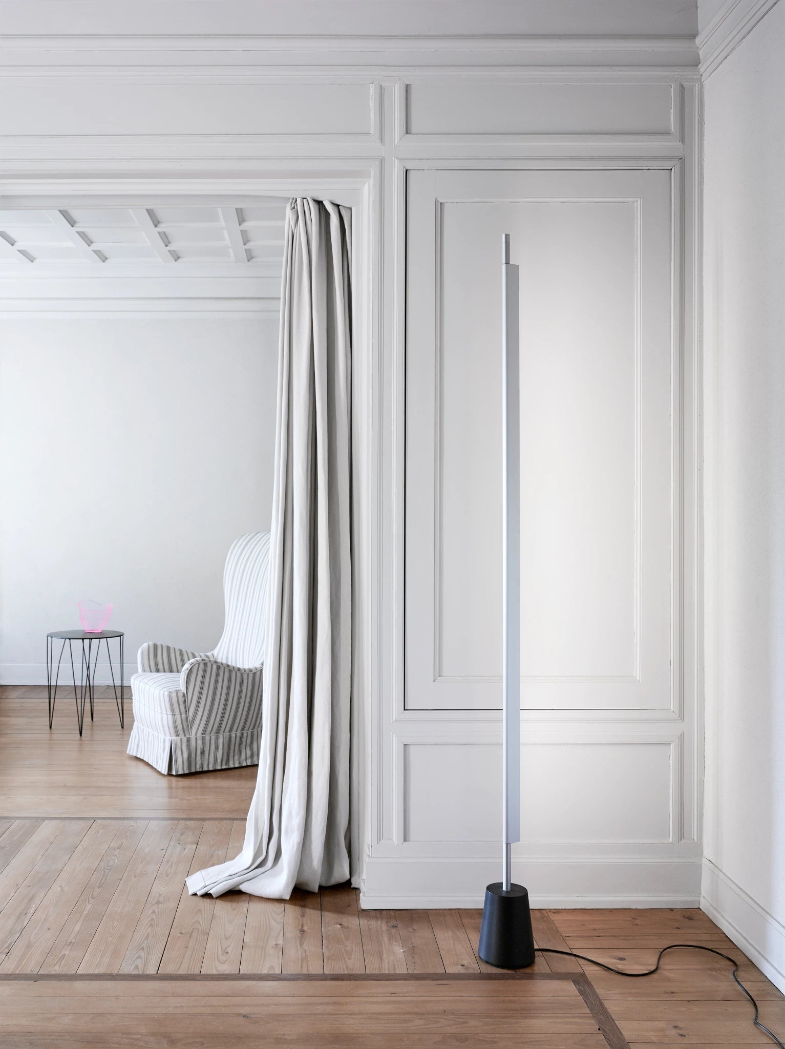 Le lampadaire Luceplan Compendium 3000K adopte une approche graphique et contemporaine. Sa silhouette longiligne en aluminium lui donne un aspect sculptural, faisant de lui une pièce marquante tout en restant élégante. Ce lampadaire est conçu pour offrir un éclairage indirect, diffusé subtilement sur les surfaces environnantes. Sa tige mobile montée sur une base stable en métal permet d’ajuster l’orientation du diffuseur, tout en évitant tout contact visuel direct avec la source lumineuse. La qualité de fabrication est au cœur du produit, qui fait appel à des matériaux durables comme le verre, le pvc et l’aluminium anodisé. Avec une LED intégrée de 3000K, ce modèle diffuse un faisceau de lumière plus neutre, parfaite pour un espace de travail ou une ambiance contemporaine. Le variateur permet un ajustement facile de l’intensité, répondant aux attentes d’utilisateurs exigeants. Ce lampadaire haut de gamme est une solution polyvalente qui se fond dans tous types de décors et de style d'intérieur, grâce à son pied fin et à sa grande hauteur qui lui confèrent une élégance et une légèreté naturelle. Il convient aussi bien aux environnements résidentiels qu’aux projets professionnels. Le lampadaire Luceplan Compendium 3000K incarne l’équilibre entre technologie, design et innovation . Il s’impose comme l’un des luminaires les plus réussis de la marque, véritable reflet de son expertise en matière de lampes modernes et esthétiques.