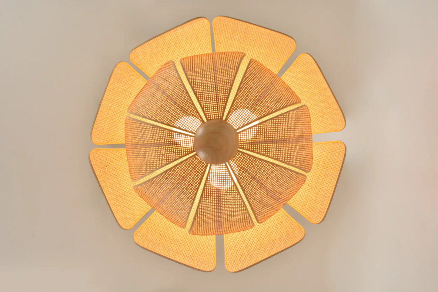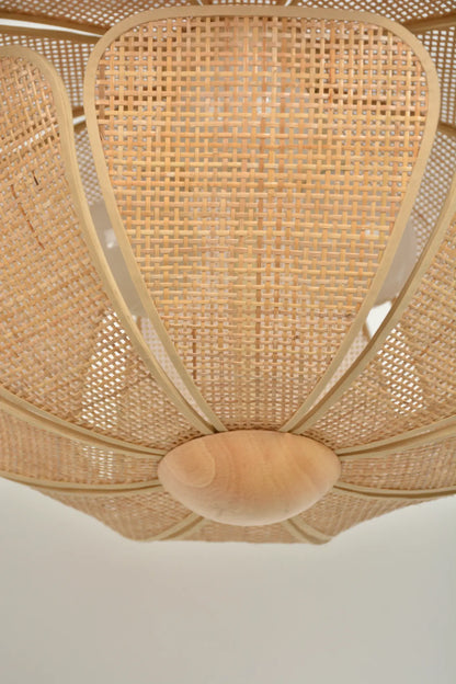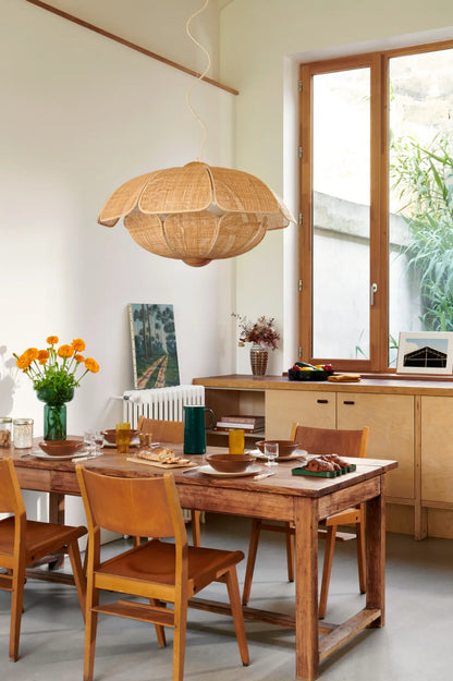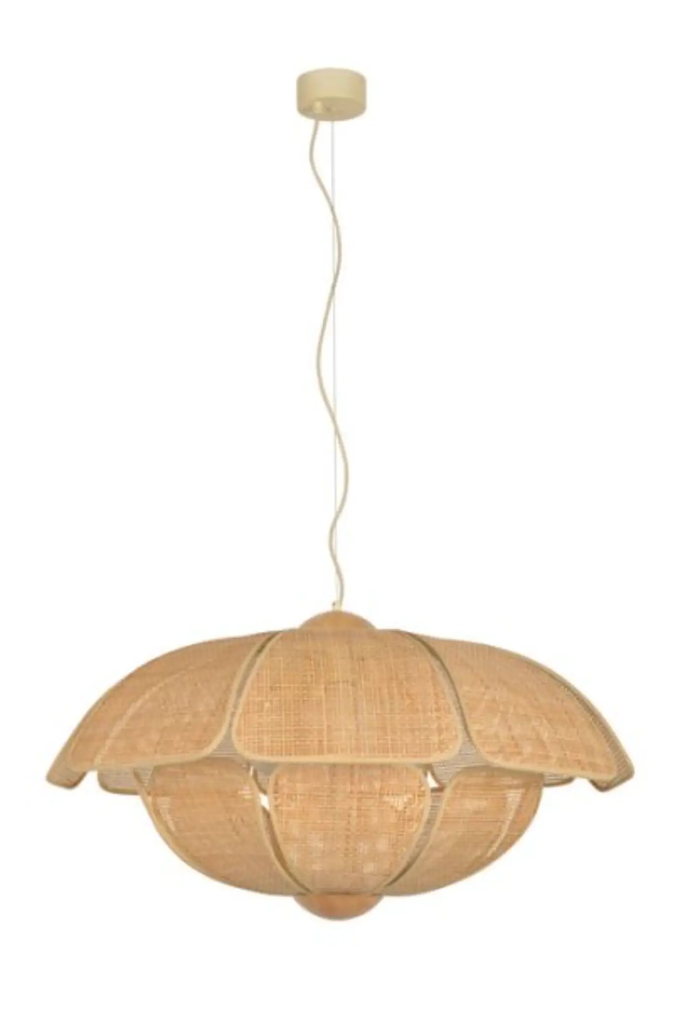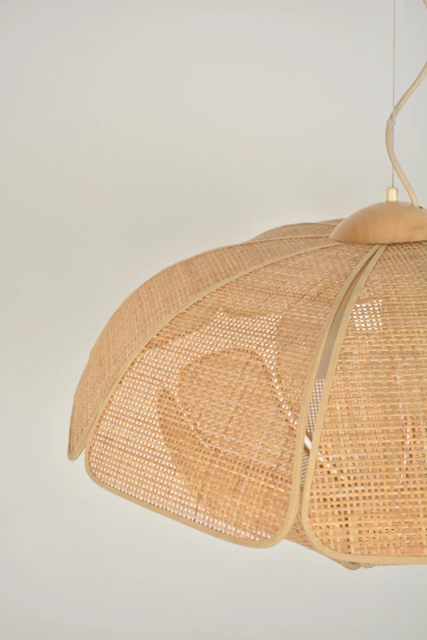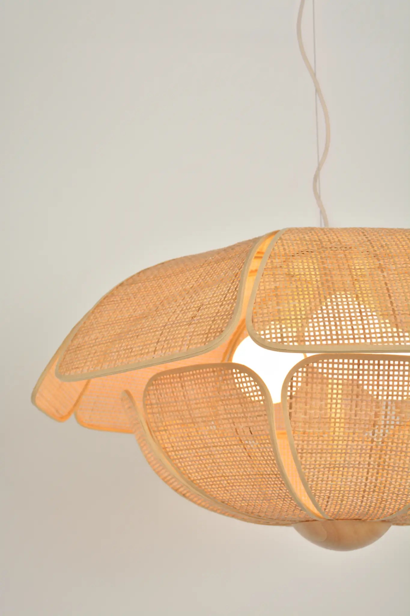 Cette suspension 3 lumières, inspirée de l'esprit coquillage, apporte une touche de charme et d’élégance à votre intérieur. Sa structure en métal peint soutient 16 écrans en cannage bordés en tissu, créant une lumière douce et diffuse qui transforme l’atmosphère de la pièce. La finition des caches douilles, en bois certifié FSC®, témoigne de l’engagement de cette suspension pour des matériaux durables et respectueux de l’environnement.