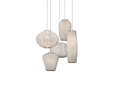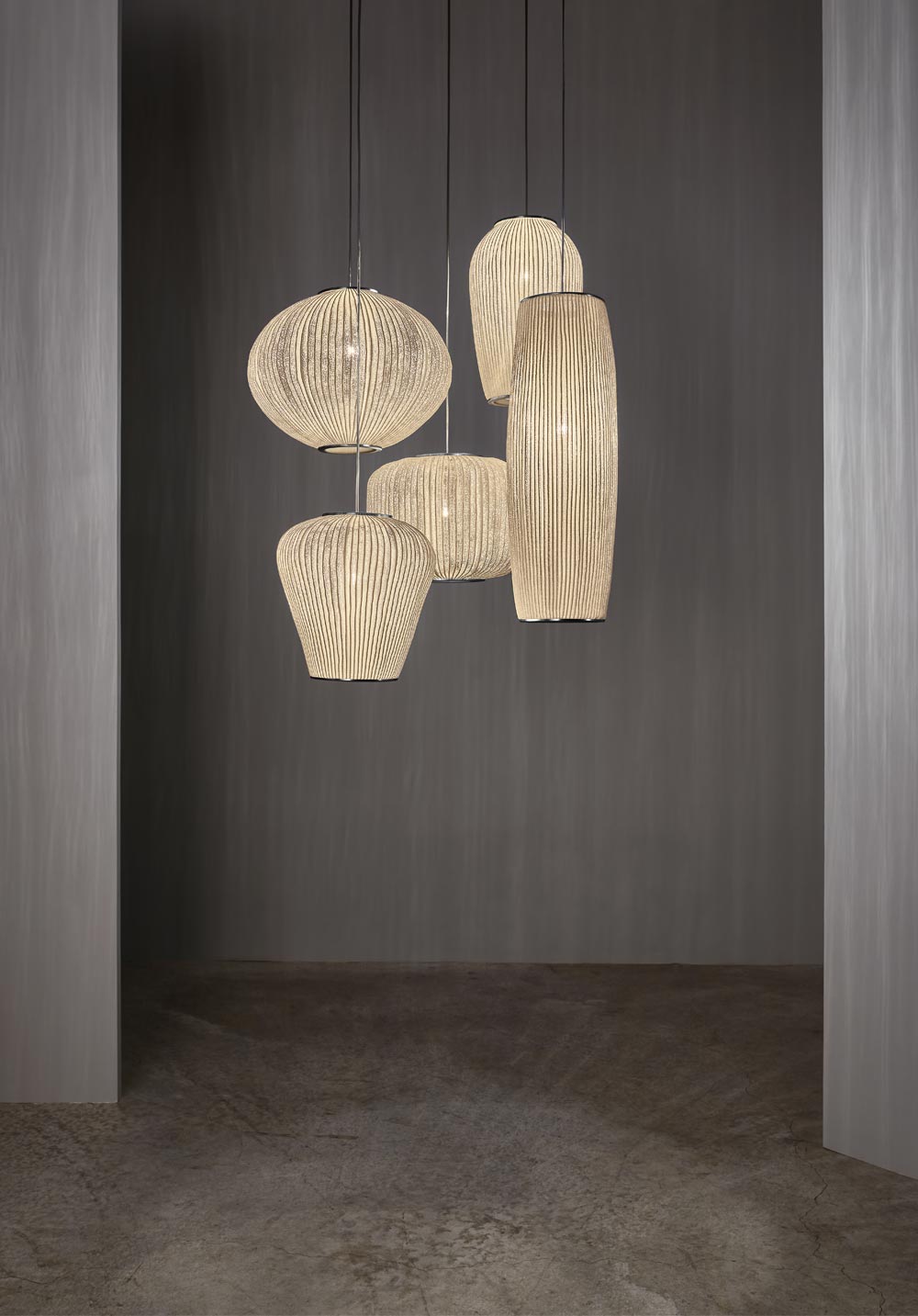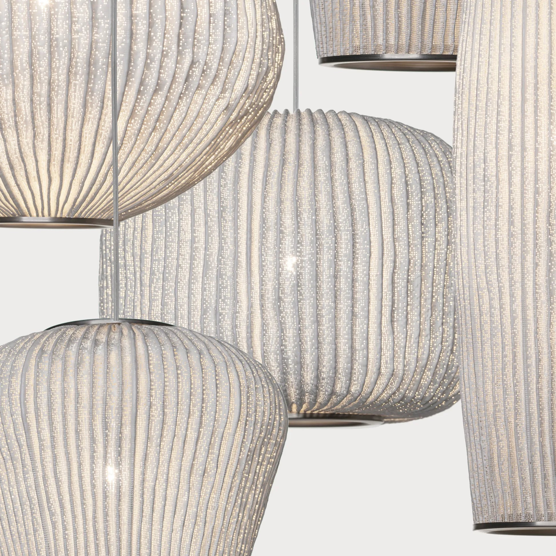 Lampes suspendues au look organique, inspirées de la beauté des récifs coralliens. Les modèles de la collection, avec leurs formes différentes et l'élégance de leurs lignes, résultent idéalement pour éclairer tout type de pièce. Le charme naturel de leurs volumes de maille en acier inoxydable peint à la main est amélioré lorsqu'ils sont combinés dans de grands lustres harmonieux. Cette suspension existe en blanc, beige, gris ou taupe.