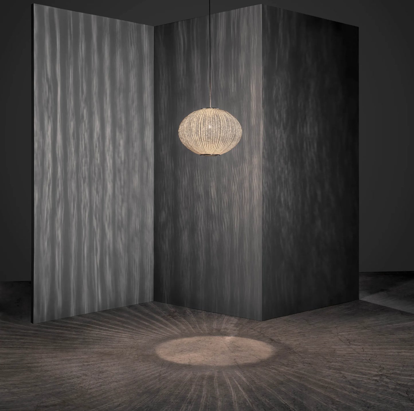 Lampes suspendues au look organique, inspirées de la beauté des récifs coralliens. Les modèles de la collection, avec leurs formes différentes et l'élégance de leurs lignes, résultent idéalement pour éclairer tout type de pièce. Le charme naturel de leurs volumes de maille en acier inoxydable peint à la main est amélioré lorsqu'ils sont combinés dans de grands lustres harmonieux. Cette suspension existe en blanc, beige, gris ou taupe.