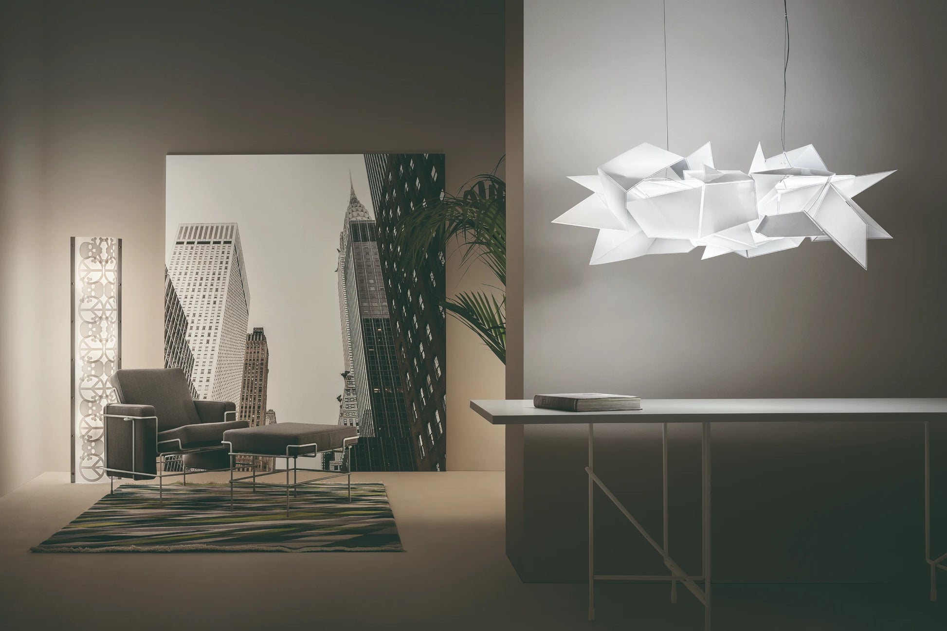 La suspension Cordoba de Slamp s’éloigne volontairement des formes conventionnelles pour proposer une vision poétique et asymétrique de la lumière. Inspirée par la richesse architecturale et spirituelle de la ville espagnole éponyme, Cordoba évoque les contrastes de lumière et d’ombre, les arcs, les fragments, et les rythmes vibrants des paysages andalous.