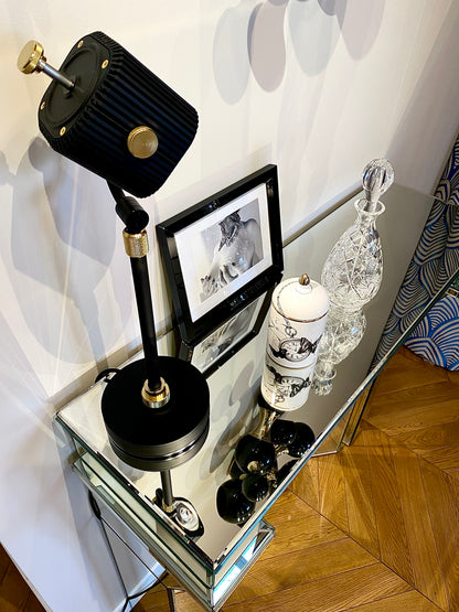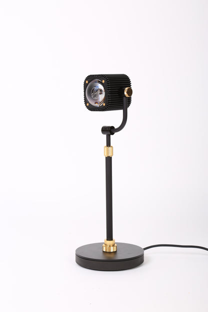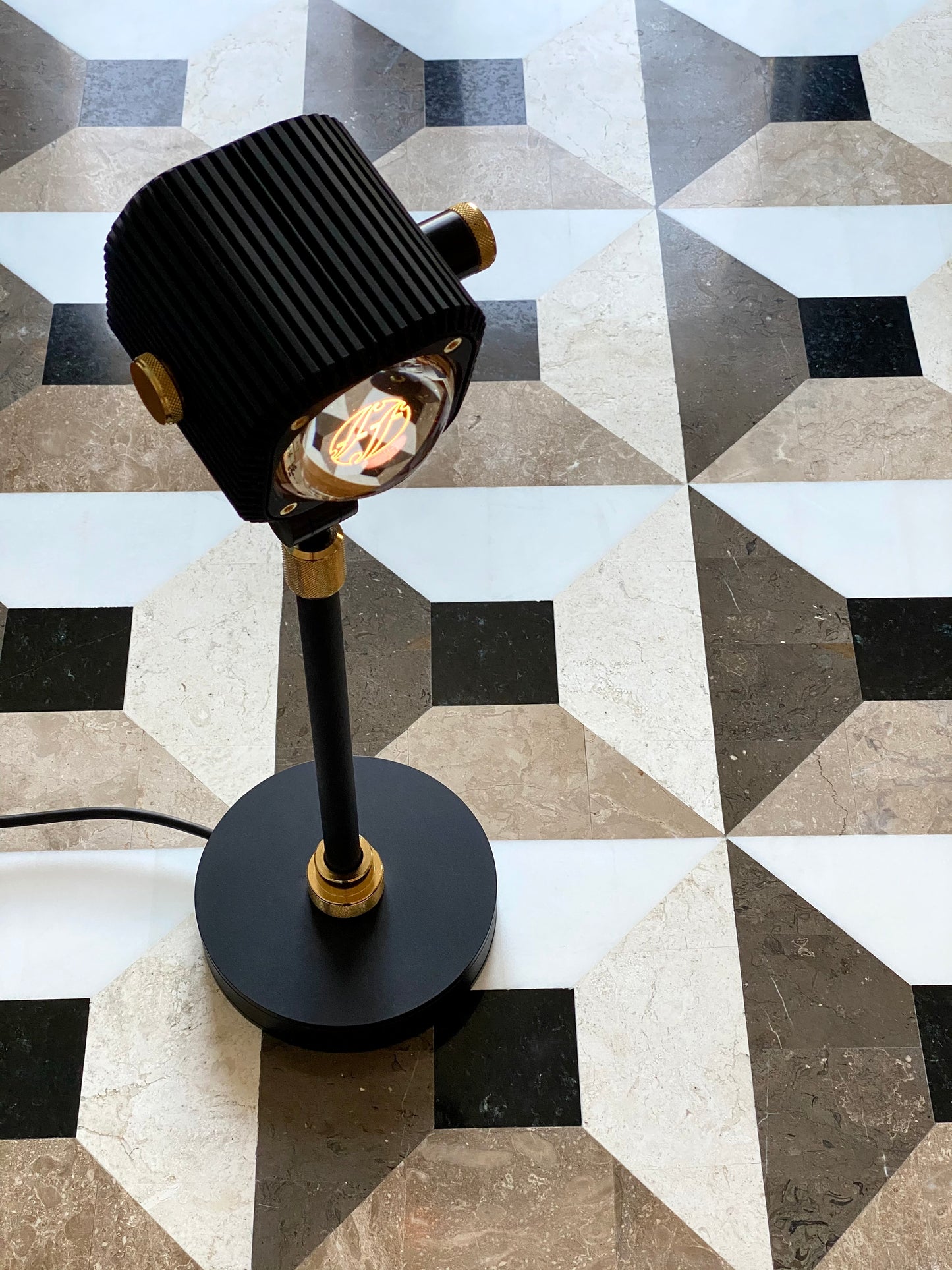 La réalisation d’un luminaire peut demander jusqu’à 42 heures de travail manuel. Un contrôle est réalisé tout au long de la création et fabrication du modèle, jusqu’aux finitions. Les matériaux utilisés font partie des plus nobles comme le platine, le titane, l’inox, l’aluminium, le cuivre et le laiton. Les optiques en verre usinées et polies avec traitements anti-reflets multi-couches sont couplées avec un système complexe de chambres noires, réflecteurs et diffuseurs. Corduroy spot sur socle dispose d'une tête amovible avec la possibilité de régler la focale et de varier l'intensité à une fréquence supérieur à 3000Hz. L'intensité se gère également par Bluetooth via une application offerte sur l’AppStore. Zoom x3 de 25° à 75°.(et en option Zoom X6)