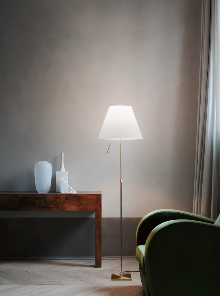 Le succès du lampadaire Costanza tient à sa luminosité douce et apaisante ainsi qu'au grand choix de coloris disponibles pour son abat-jour. Malgré ses formes classiques, son bras télescopique réglable en aluminium et son abat-jour en polycarbonate font de ce lampadaire un objet au design moderne remarquable. Il fonctionne avec des ampoules halogène écologiques et son abat-jour interchangeable vous permet de l'intégrer facilement dans n'importe quelle ambiance d'intérieur. Le lampadaire Costanza possède un variateur de luminosité tactile placé sur le support de l'ampoule qui peut être facilement actionné depuis un fauteuil. Ce variateur permet de régler la luminosité de manière progressive et de l'adapter ainsi à tous les besoins. La lampadaire Costanza peut diffuser une lumière vive pour la lecture et une lumière plus douce d'ambiance, ce qui en fait une lampe d'intérieur idéale pour le salon, la salle à manger ou la chambre.