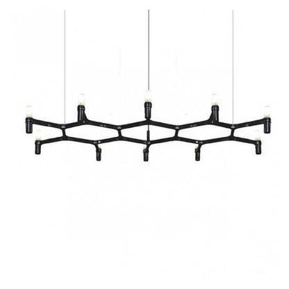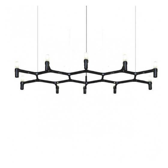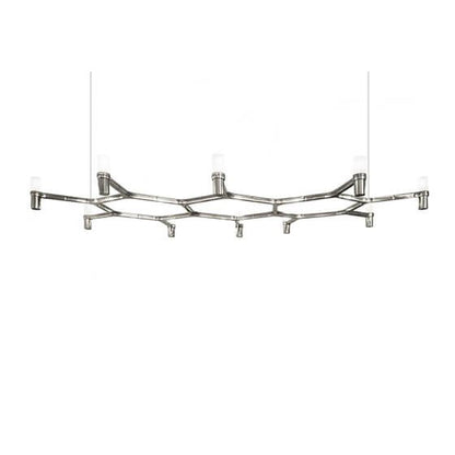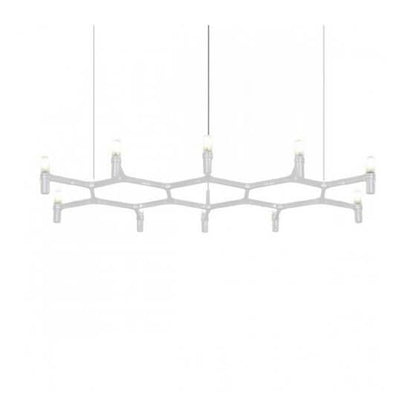 Famille composée de lustres suspendus dont la forme s'inspire du contour du cristal de neige. Lampes modulaires réalisées avec une structure en aluminium moulé sous pression et des diffuseurs en verre sablé.