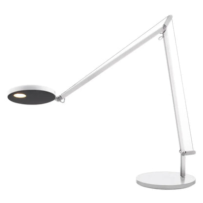 Cette lampe de table se compose d'une base, tête orientable et bras mobiles en aluminium peint. Sa tête intègre un variateur sensoriel et diffuse une lumière LED à la fois intense et chaude. Ses bras articulés et sa tête orientable permettent de diriger le flux lumineux dans la direction souhaitée. Demetra se décline en trois finitions : gris, blanc et noir. Il existe une version avec détecteur de présence (nous contacter).