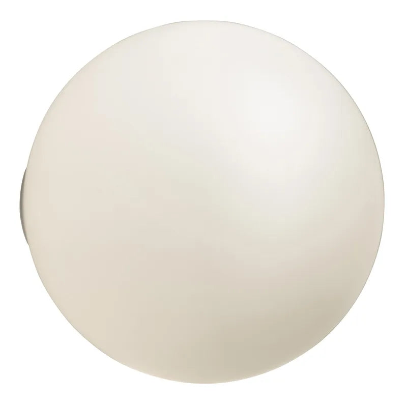 Cette applique au design simple et élégant se compose d'une base en résine thermoplastique et d'un diffuseur en verre soufflé traité à l'acide. Elle émet une lumière diffuse.