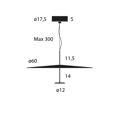 Dimensions: Ø60cm - Base Ø17.5cm H. 5cm- câble 300cm