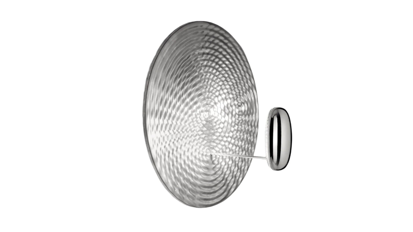 Droplet est une lampe qui ressemble à un lac d’aluminium liquide qui reflète un galet lisse. Elle a été créée numériquement et elle semble figer dans le temps les ondes qui se croisent pour définir les zones de réflexion, en agissant comme une forme de liquide dichroïque. Ce plafonnier, pouvant être utilisé en applique, se compose d'un corps lumineux en aluminium moulé sous pression et d'un réflecteur en aluminium moulé. Il émet un flux lumineux indirecte.