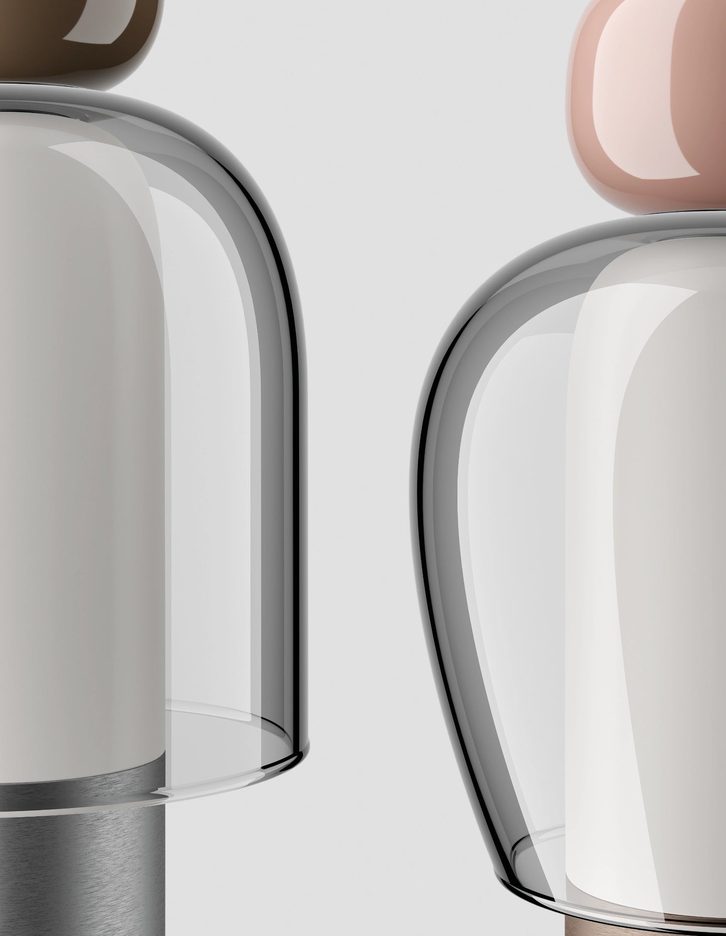 Disponible en quatre combinaisons de couleurs, chaque lampe se compose de deux éléments, du corps et du pommeau. Le corps de la lampe comporte une base en métal qui abrite la source lumineuse à LED et un diffuseur en méthacrylate blanc contenu dans une cloche de verre. Le verre filtre la lumière et est disponible en deux formes et couleurs différentes. Sur la partie supérieure, un pommeau arrondi permet d’allumer et d’éteindre la lampe et de varier l’intensité et la chaleur de la lumière. La variation « dim-to-warm » rend Easy Peasy parfaite pour créer une atmosphère intime et familière tant dans les environnements domestiques que dans les hôtels et restaurants.