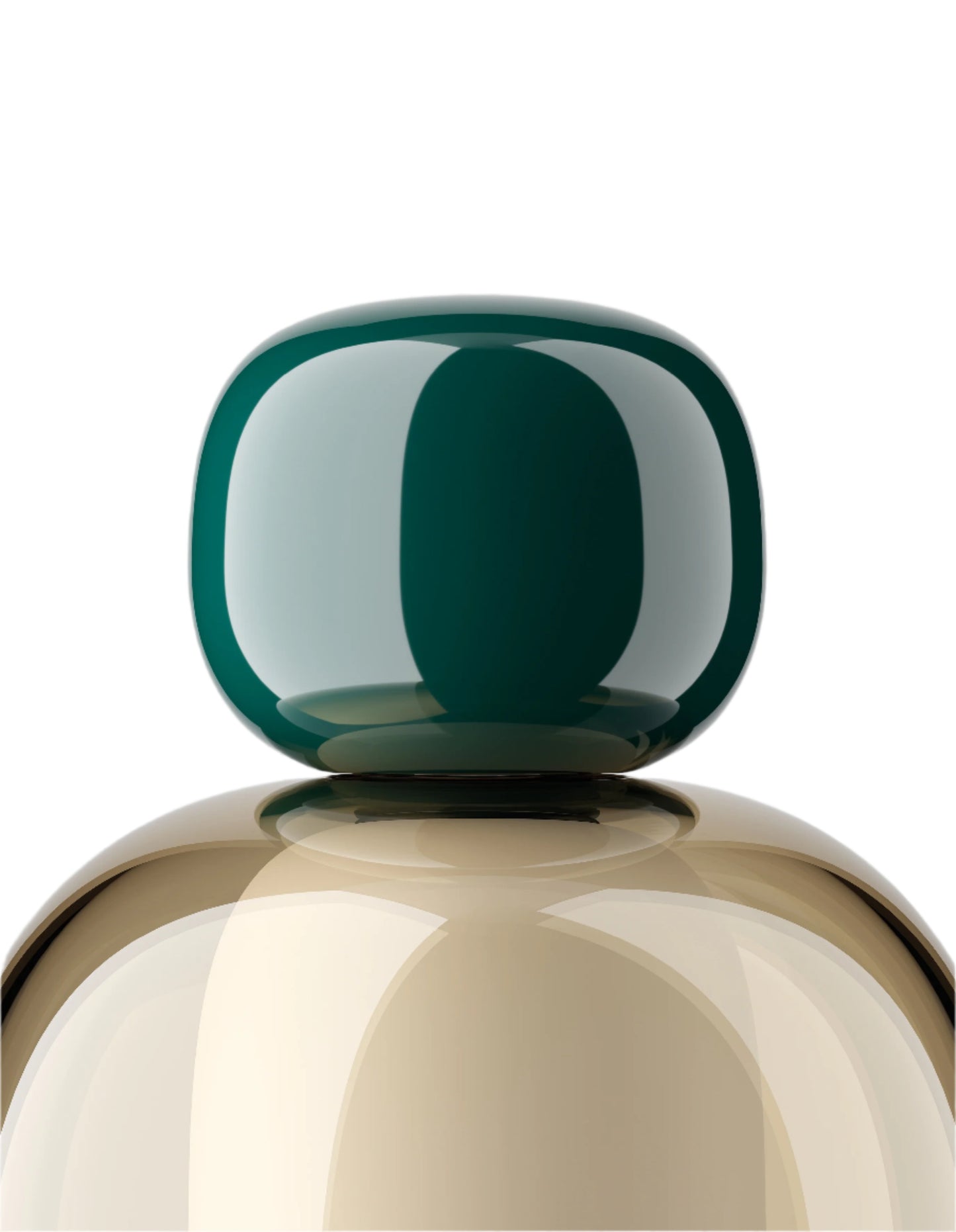 Easy Peasy surprend par sa richesse de détails, entre sensorialité et fonction. La diversité tactile de ses surfaces, dans lesquelles le brillant et la transparence, le métal et le verre coexistent dans un contraste captivant, est mise en valeur par les combinaisons de couleurs sophistiquées et contemporaines. Le pommeau est l’élément clé dans lequel coexistent la couleur, les gestes innés et le contrôle des fonctions technologiques. La prise micro-USB à la base du corps permet de recharger la batterie. Plus qu’une lampe, il s’agit d’un compagnon vivace qui réchauffe la pièce d’une intimité lumineuse.