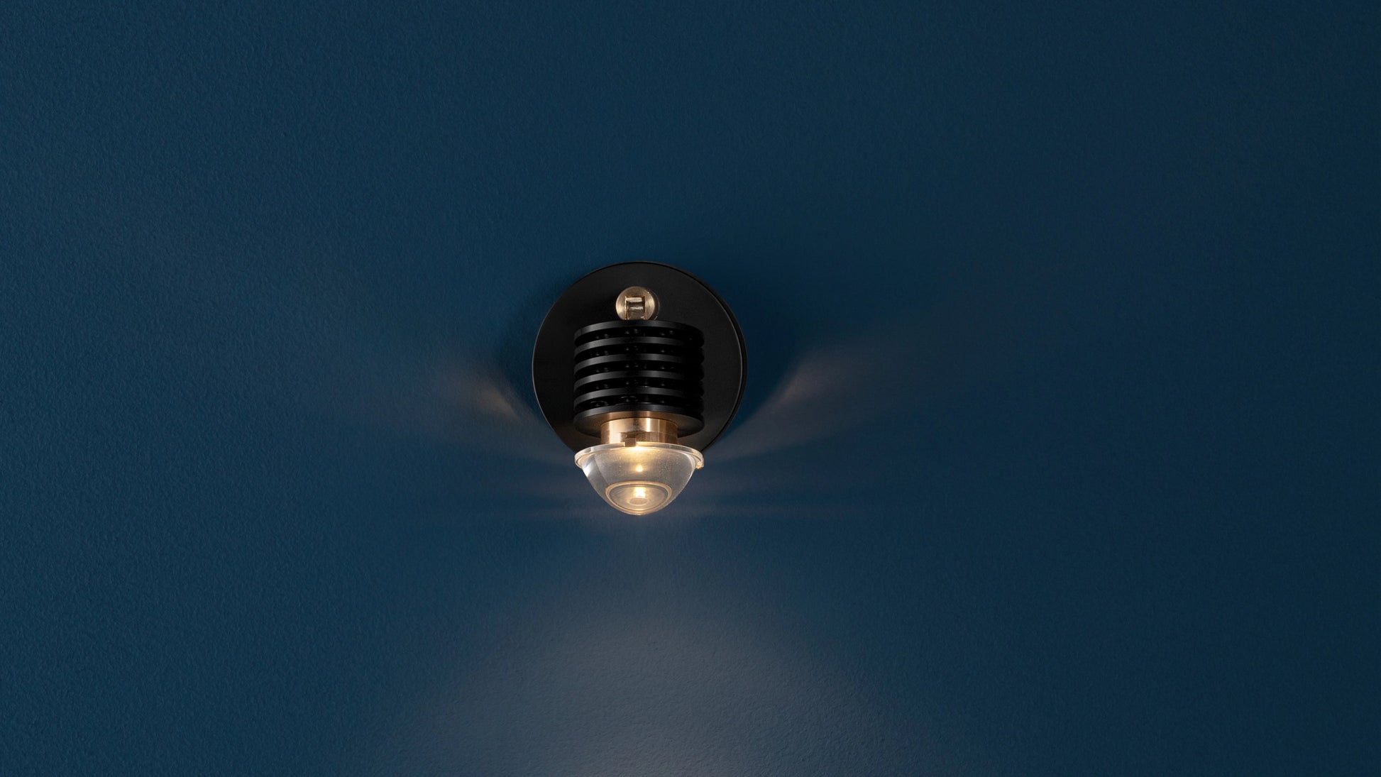EC 301 se compose d’une base et d’une structure de couleur noire avec des éléments laiton. La source lumineuse LED logée à l’intérieur d’une lentille dessine différrentes formes de lumière, en fonction de l’orientation obtenue grâce à l’articulation de raccord avec la base.