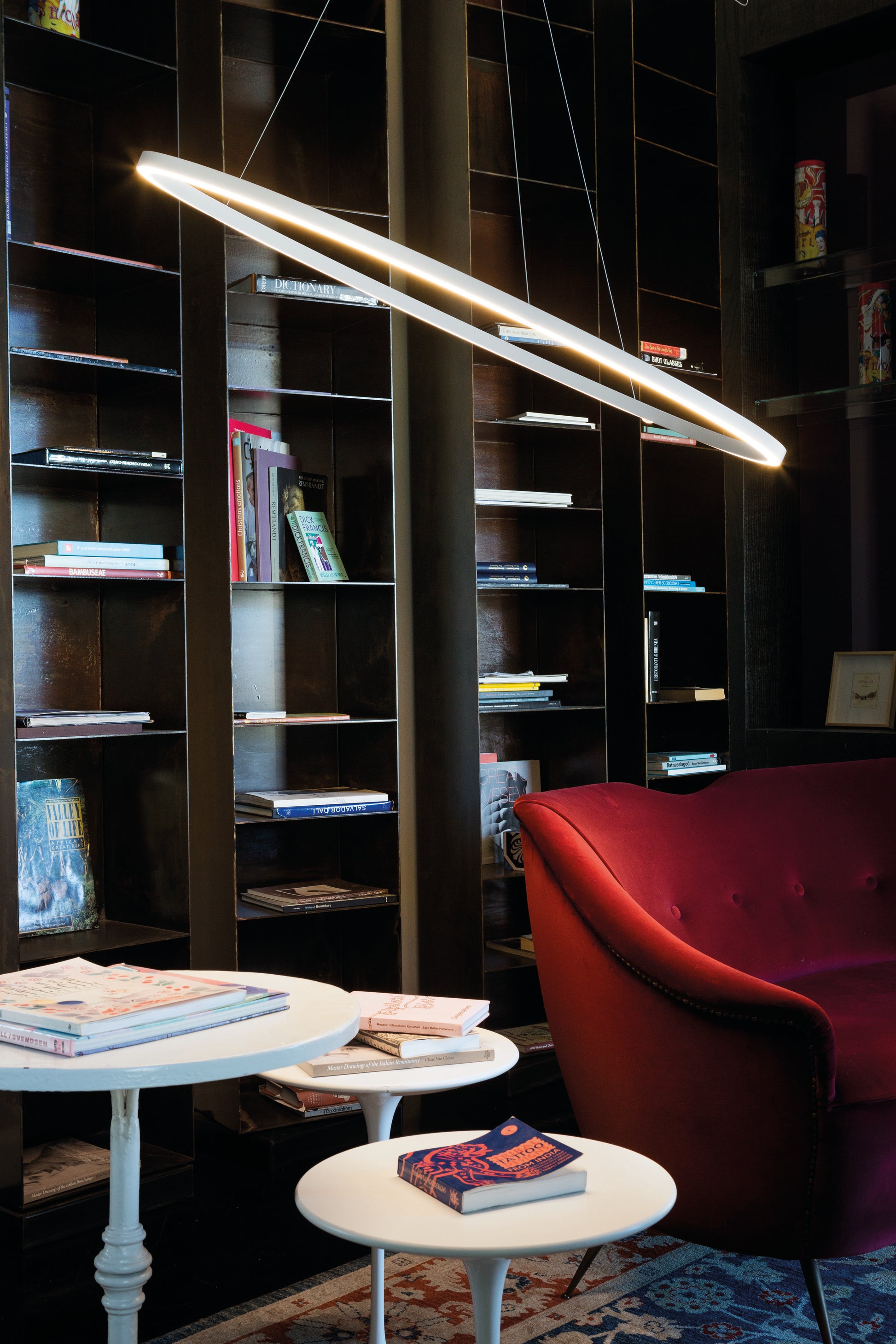 La collection Ellisse propose différentes tailles d'Ellipses, simple ou multiples. L'éclairage peut être direct ou indirect. Elles peuvent donc s'adapter à tous vos besoins et sont particulièrement recommandées aux hauteurs sous plafond inférieures à 280cm.