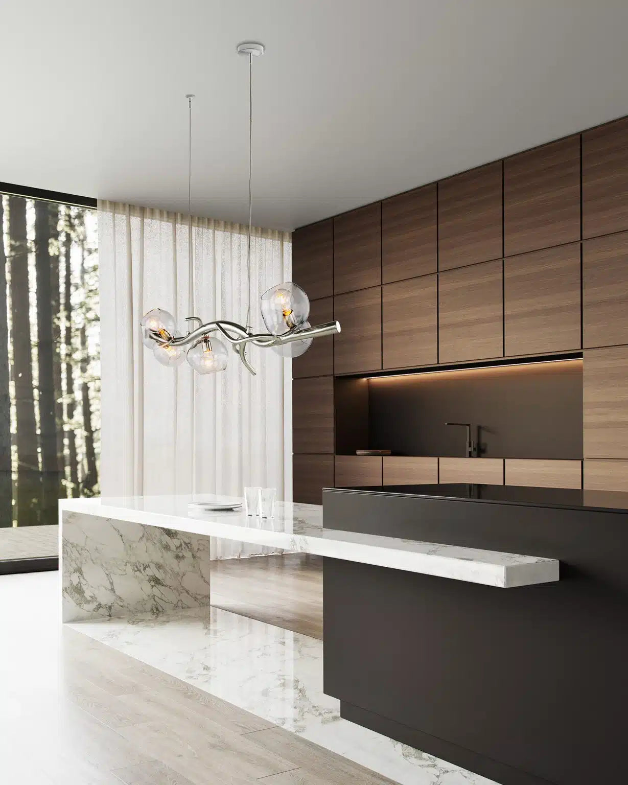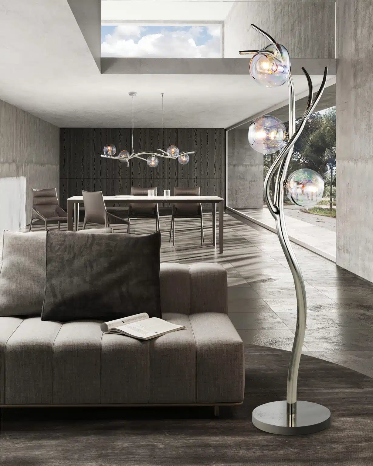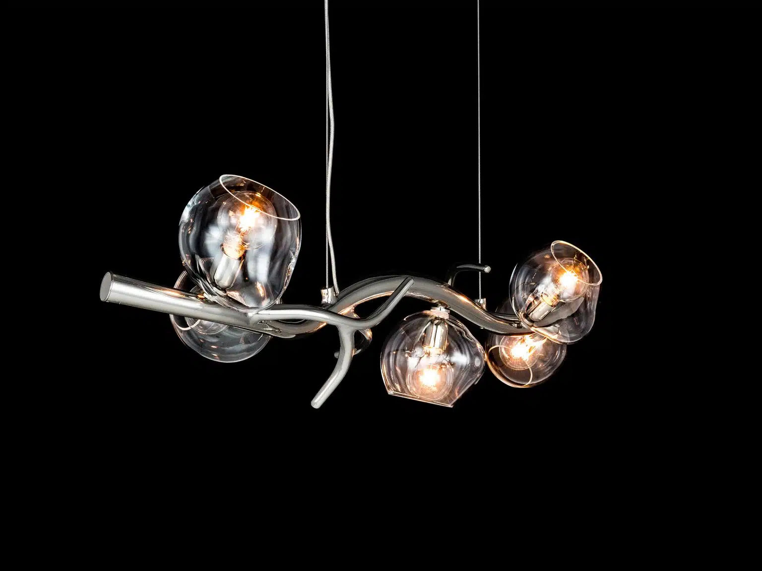 La collection Ersa se démarque immédiatement par sa forme végétale. Cette suspension se fera d'emblée remarquer par son originalité et sa touche décorative. Les sphères sont en verre iridescent.