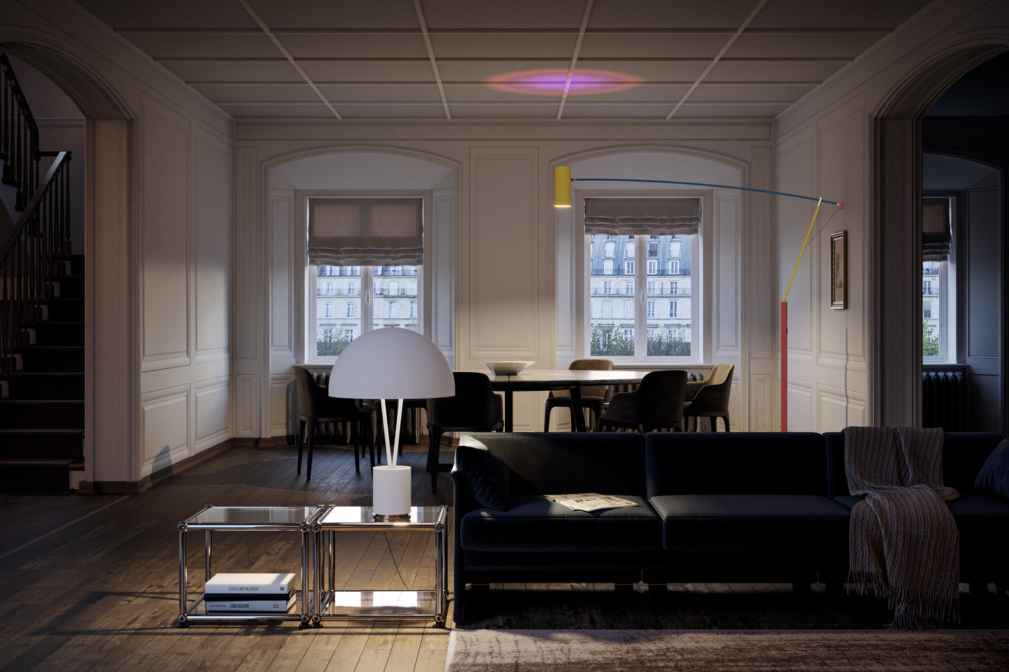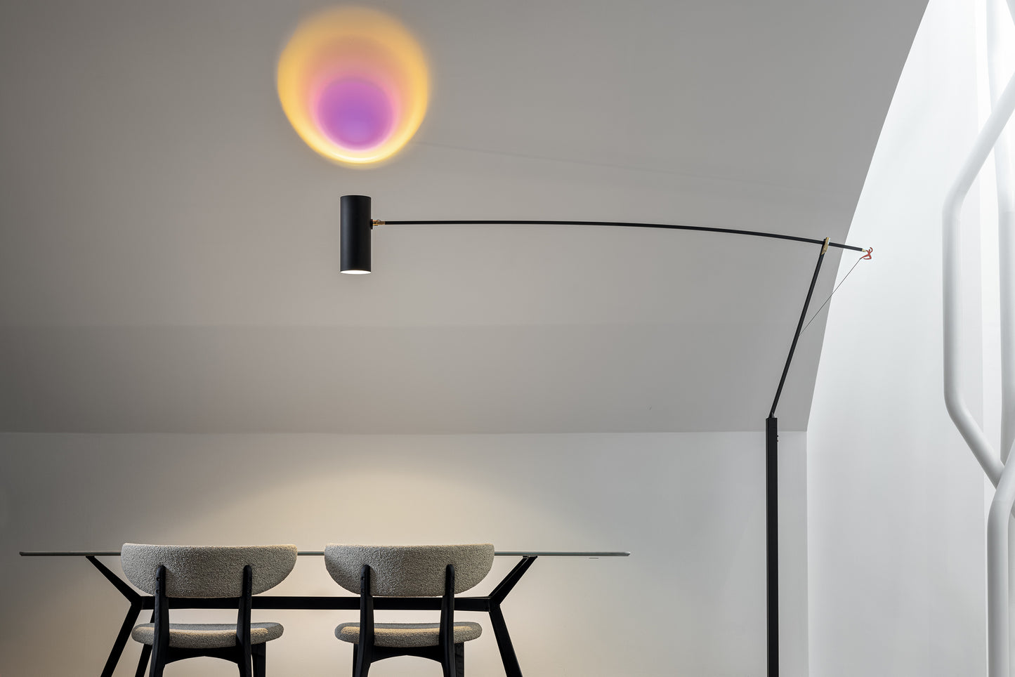 “C’est en 2004 que la couleur fit sa première apparition dans notre catalogue. La collection s’appelait Postkrisi. La couleur, symbole de renaissance, de joie. Aujourd’hui, cette couleur retrouve sa place." Ettorino Big est un lampadaire de grande taille, adapté pour éclairer votre salon ou une longue table, grâce à une DEL COB 15W associée à une optique très large qui renvoit une lumière régulière sur la surface en dessous. Disponibles dans les finitions classiques noire et blanche, les lampes Ettorino proposent également la version « colourful » avec l'association parfaite de couleurs primaires, mêlant rouge, jaune et bleu. Ces nouvelles lampes se caractérisent par un design essentiel, personnalisé par des détails inattendus. La présence d’une silhouette rouge, un détail fonctionnel à la forme dansante, caractérise toutes les lampes Ettorino, ce qui apporte un côté très original.